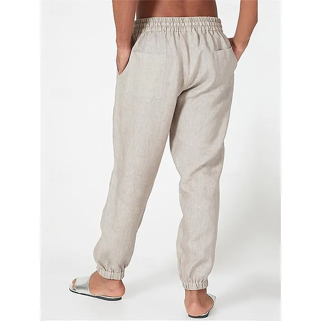 40% Linen Men’s Linen Pants Trousers Summer Pants Drawstring Elastic Waist Elastic Cuff Plain Breathable Comfortable Daily Vacation Going out Classic Casual Black Navy Blue