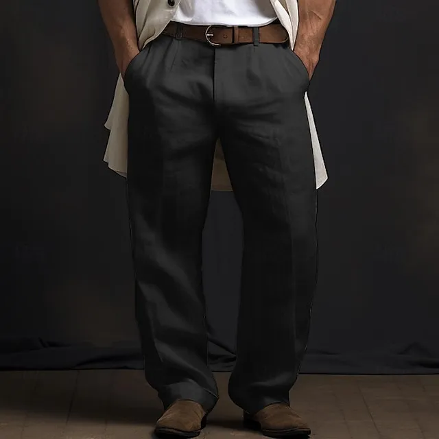 40% Linen Men’s Linen Pants Trousers Summer Pants Pocket Straight Leg Plain Breathable Comfortable Office / Career Daily Vacation Classic Casual Black White