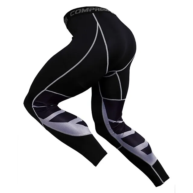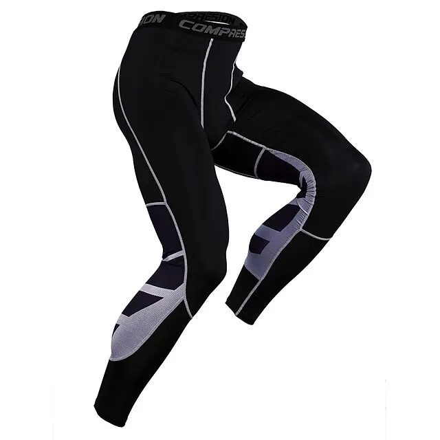 Men’s Compression Pants Running Tights Leggings Base Layer Athletic Winter Breathable Moisture Wicking Quick Dry Fitness Gym Workout Running Sportswear Activewear Color Block Green Grey