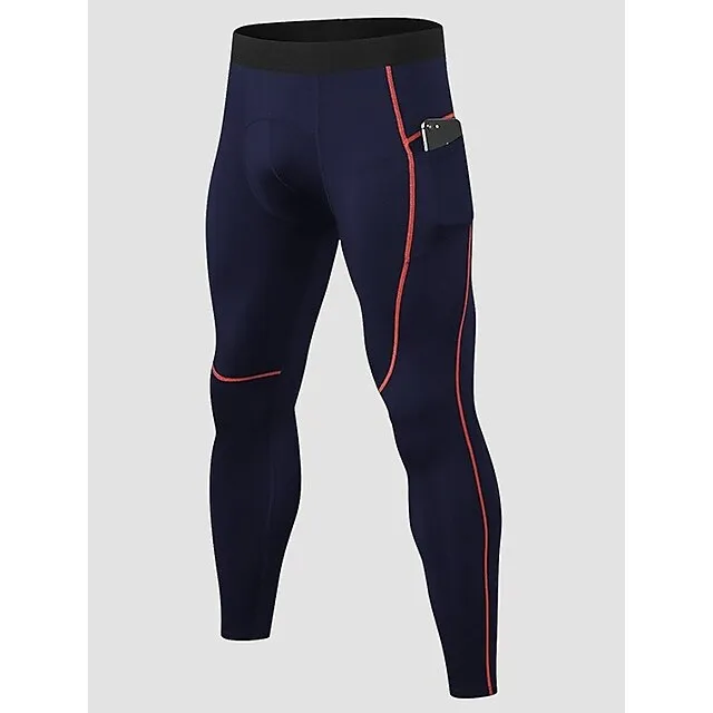 Men’s Compression Pants Running Tights Leggings with Phone Pocket Base Layer Outdoor Athletic Athleisure Spandex Breathable Moisture Wicking Soft Fitness Gym Workout Performance Skinny Sportswear