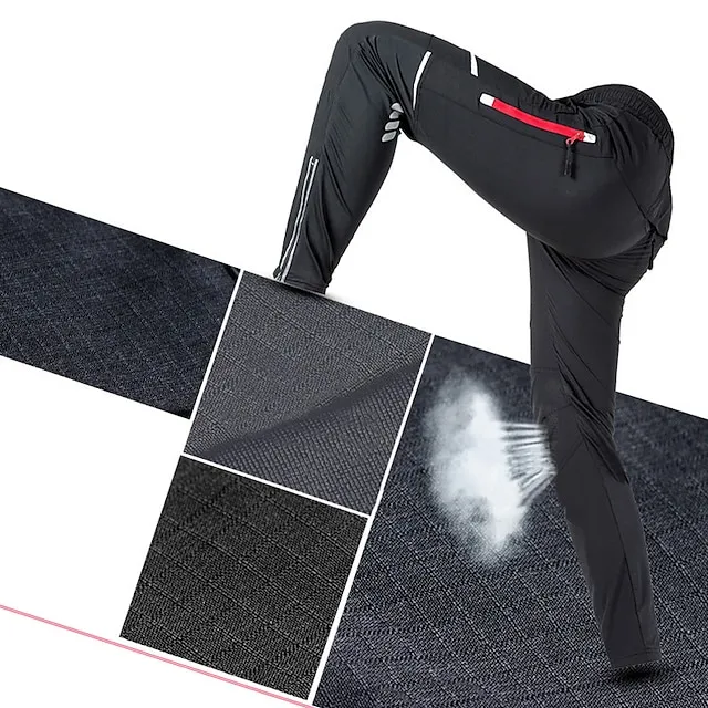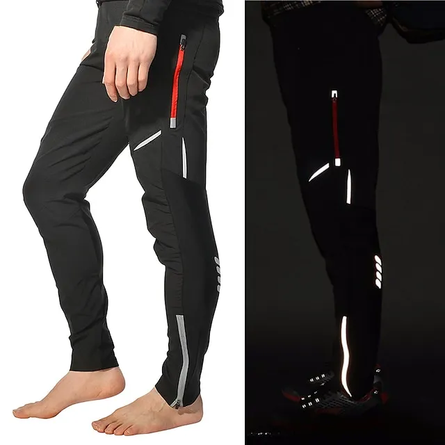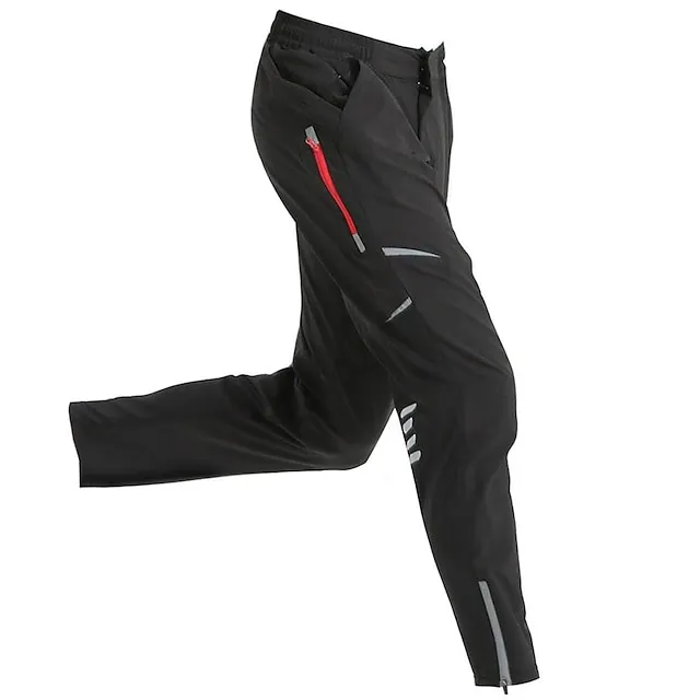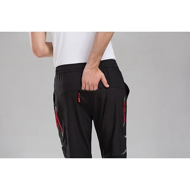Men’s Cycling Pants Hiking Bike Pants Black Trousers Outdoor Reflective Strips Bike Bottoms Windproof Breathable Moisture Wicking Quick Dry Anatomic Design Camping Fishing Mountain MTB Road Bike