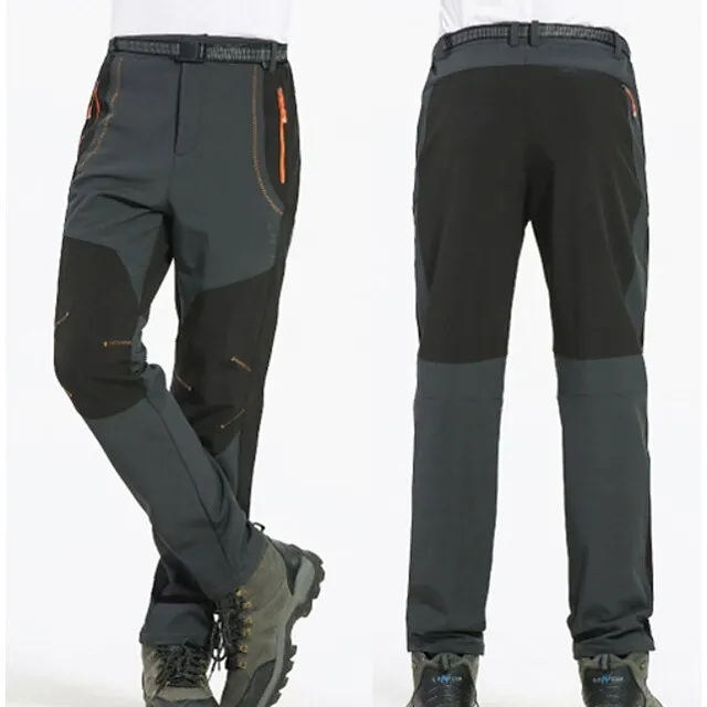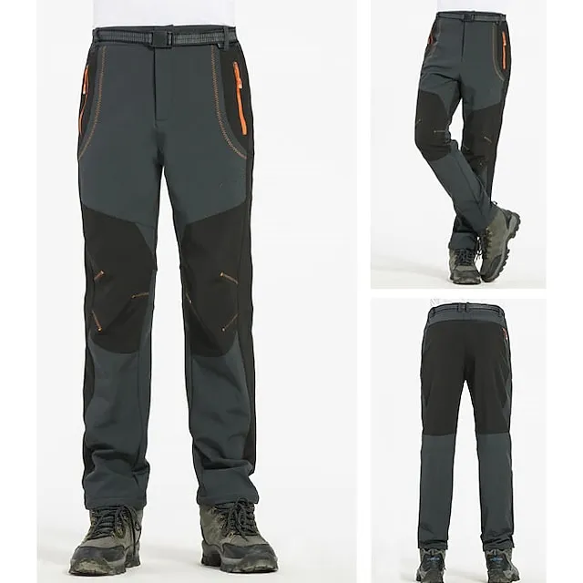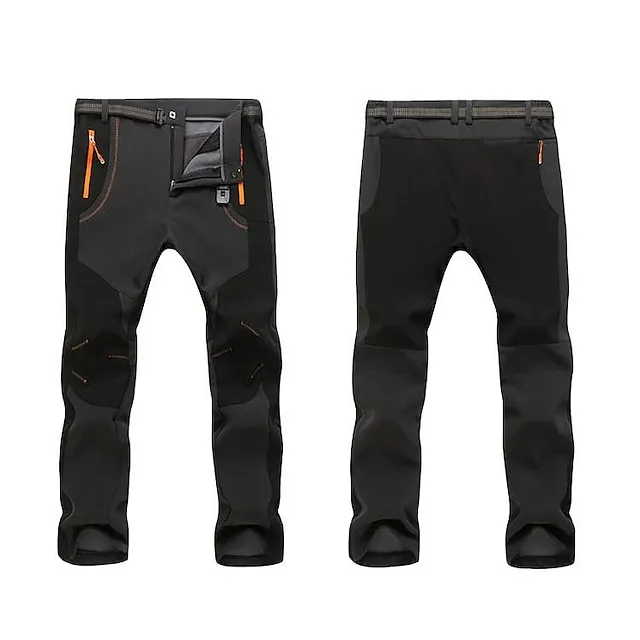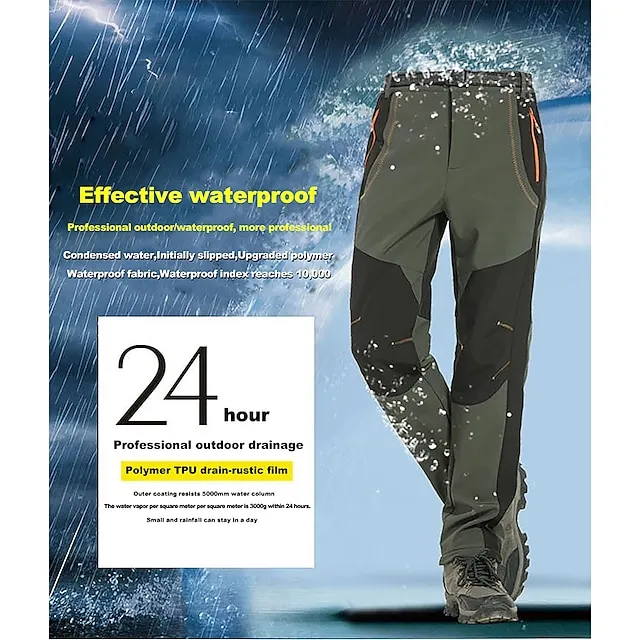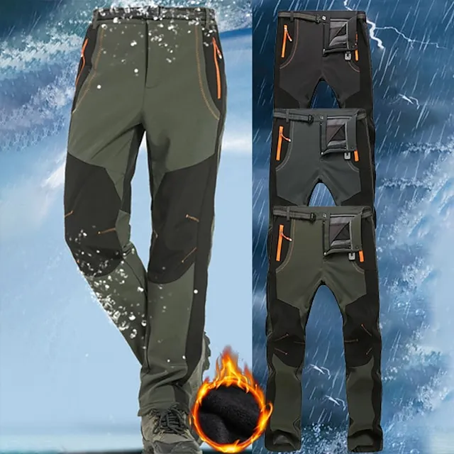 Men’s Fleece Lined Pants Waterproof Hiking Pants Trousers Softshell Pants Winter Outdoor Thermal Warm Windproof Breathable Elastic Waist Fleece Bottoms Army Navy Grey Black Hunting Fishing Skiing