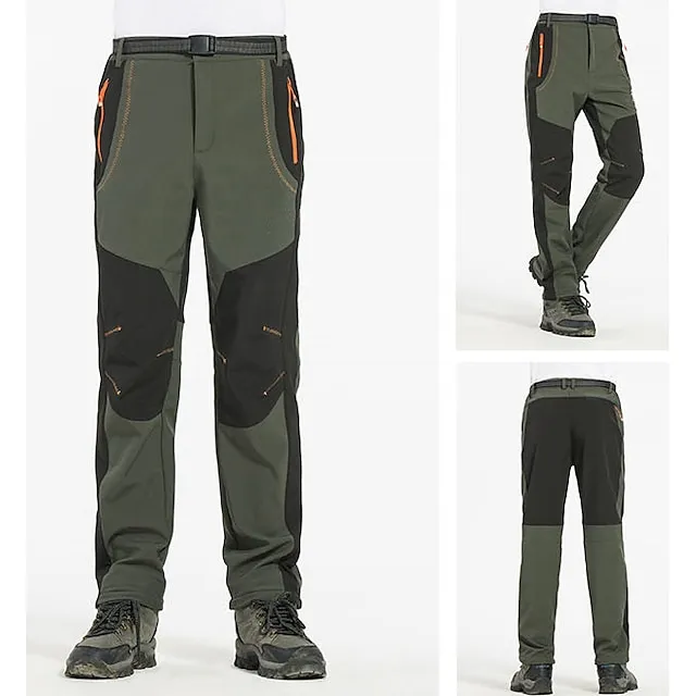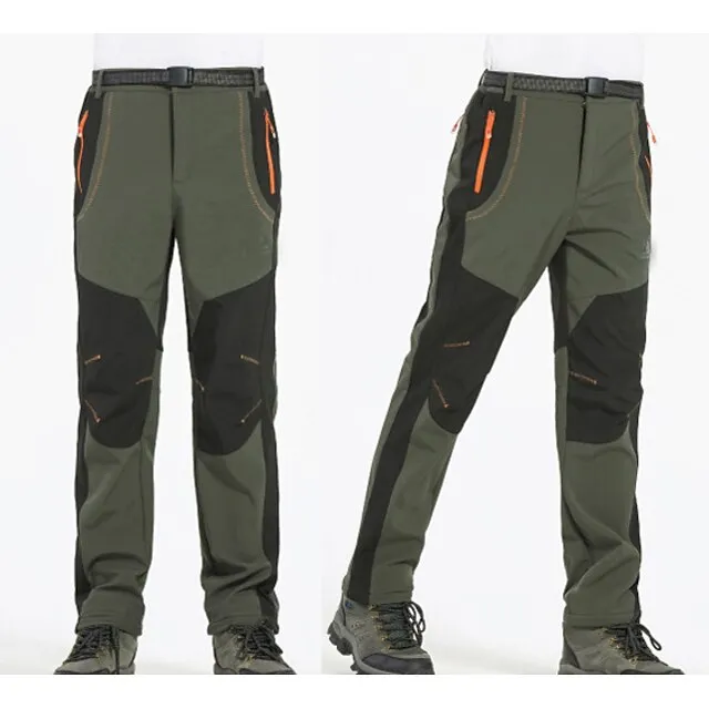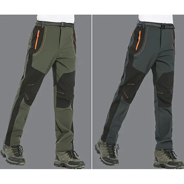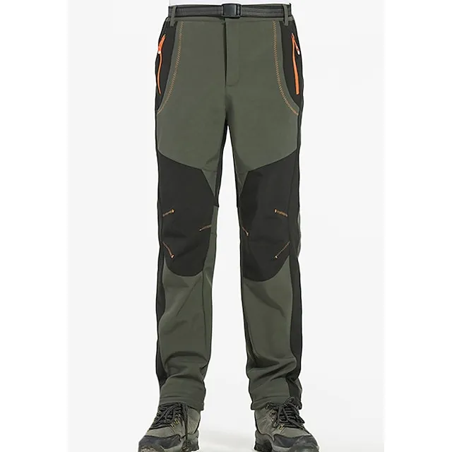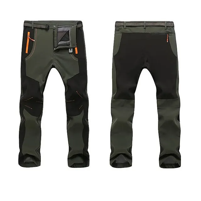 Men’s Fleece Lined Pants Waterproof Hiking Pants Trousers Softshell Pants Winter Outdoor Thermal Warm Windproof Fleece Lining Pants / Trousers Bottoms Army Green Gray Black Hunting Fishing Climbing