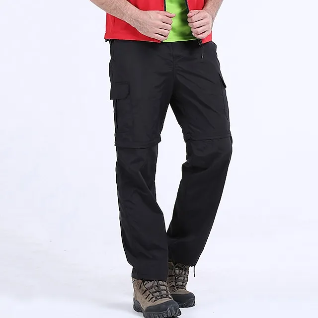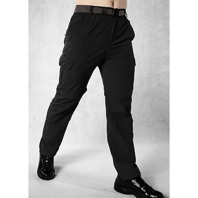 Men’s Hiking Pants Black Trousers Convertible Pants / Zip Off Pants Solid Color Summer Outdoor Waterproof Breathable Quick Dry Sweat-wicking Nylon Pants / Trousers Convertible Pants Bottoms Black Army