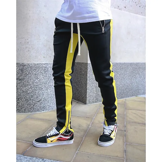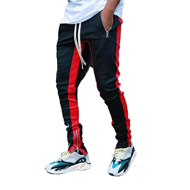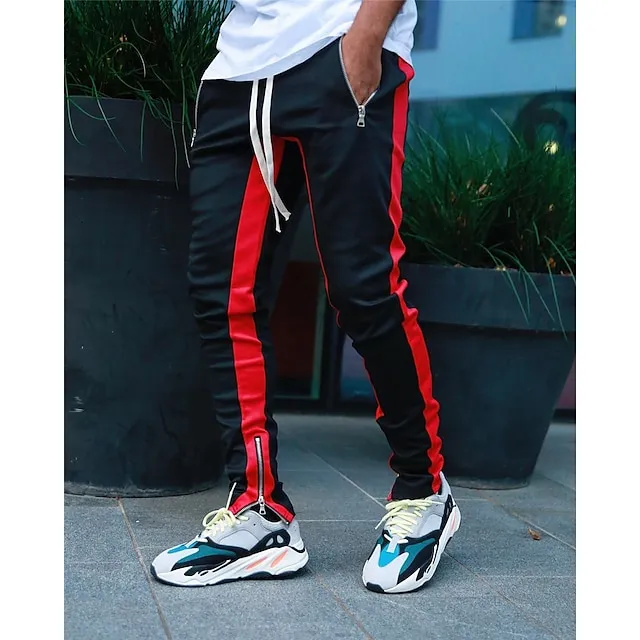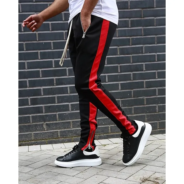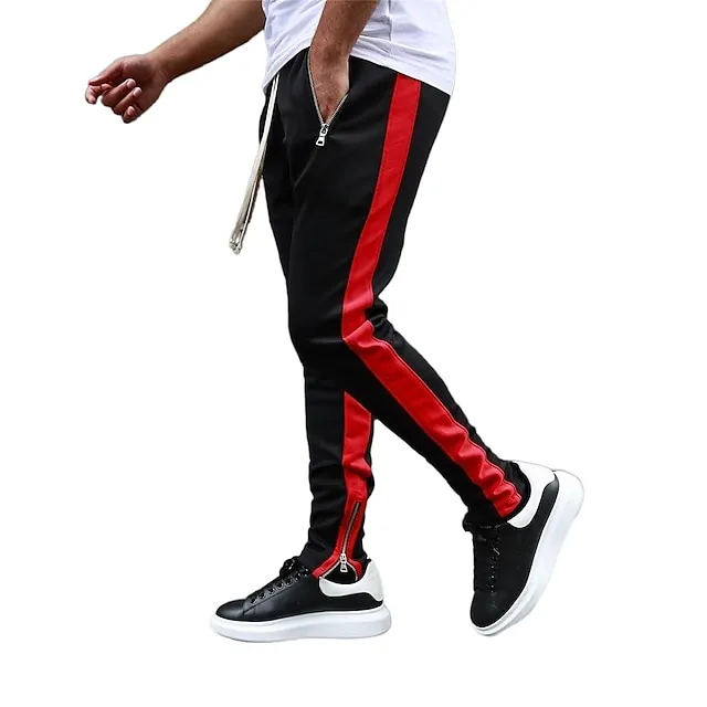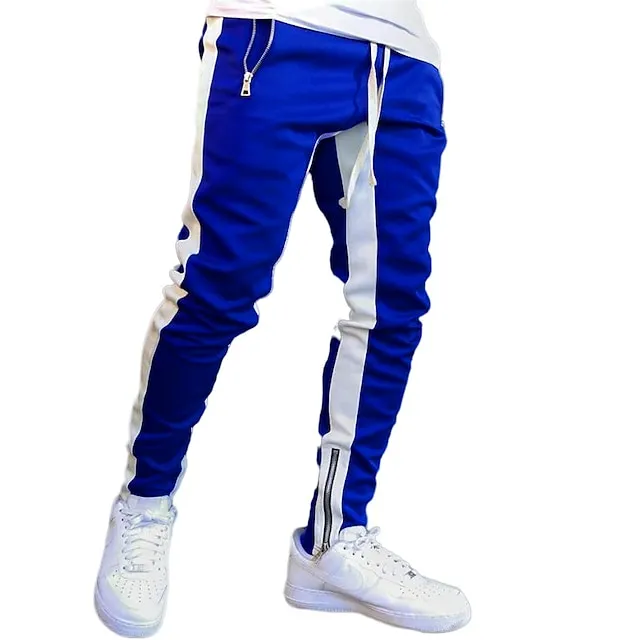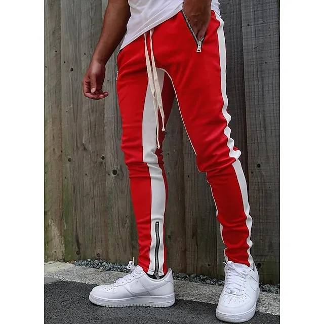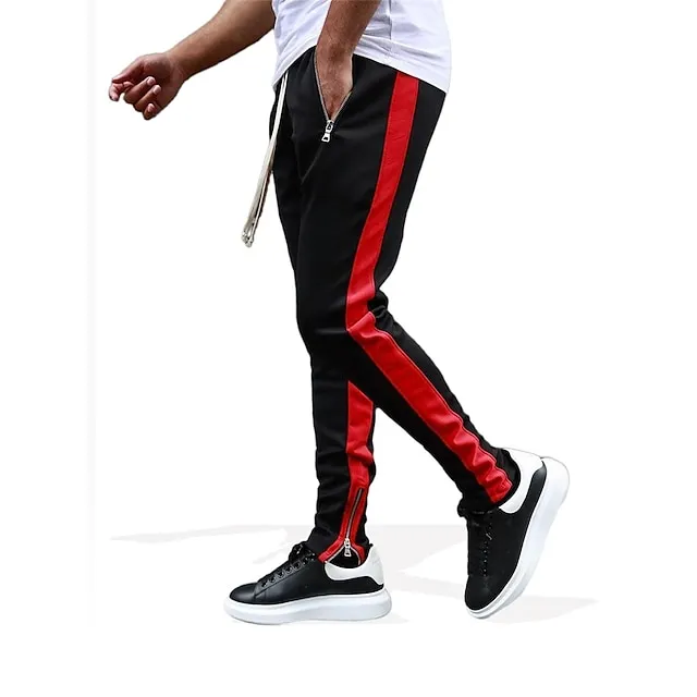 Men’s Joggers Sweatpants Zipper Pocket Ankle Zippers Bottoms Athletic Athleisure Spring Breathable Moisture Wicking Soft Fitness Gym Workout Running Sportswear Activewear Color Block Red Navy Blue