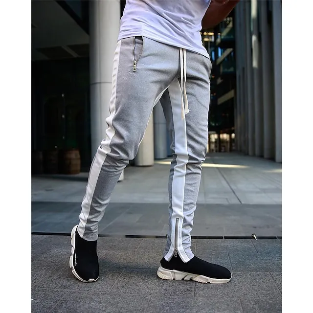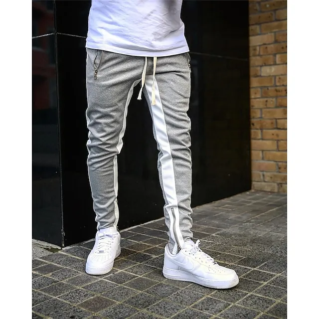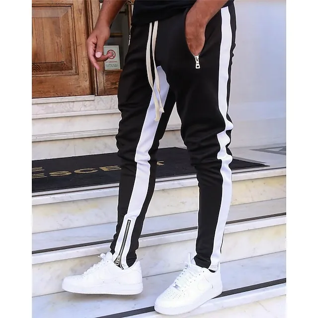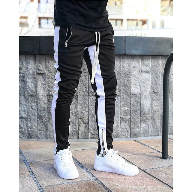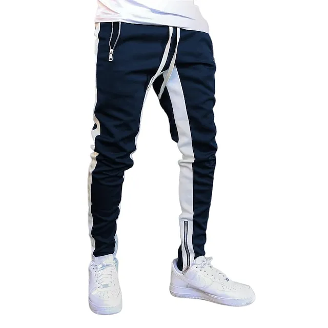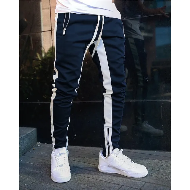 Men’s Joggers Sweatpants Zipper Ankle Zippers Base Layer Athletic Athleisure Winter Breathable Soft Sweat wicking Fitness Gym Workout Running Slim Fit Sportswear Activewear Stripes Black Dark Blue