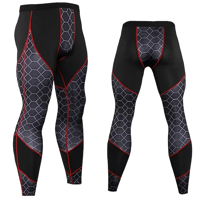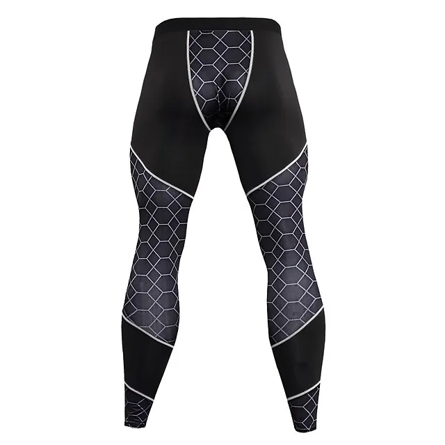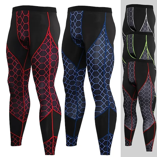 Men’s Running Tights Leggings Compression Tights Leggings Base Layer Patchwork Base Layer Athletic Athleisure Winter Fitness Gym Workout Running Breathable Quick Dry Moisture Wicking Sport Plaid