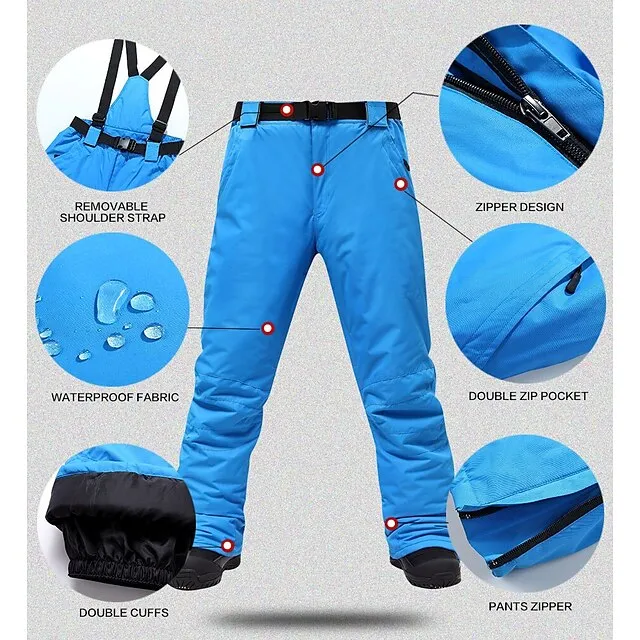 MUTUSNOW Men’s Ski / Snow Pants Ski Bibs Outdoor Winter Insulated Thermal Warm Waterproof Windproof Bib Pants for Skiing Snowboarding Winter Sports