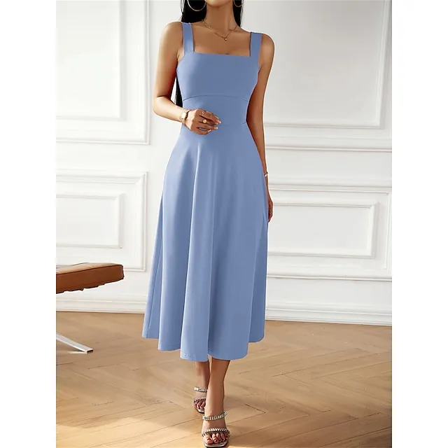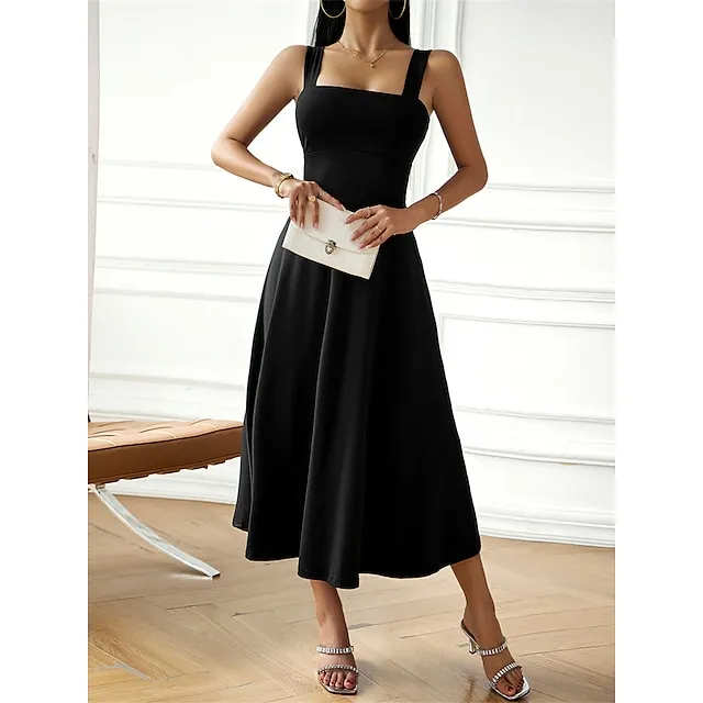Women’s Black Dress Party Dress Cocktail Dress Midi Dress Black Blue Beige Sleeveless Pure Color Ruched Fall Autumn Spaghetti Strap Fashion Wedding Guest Birthday Vacation Slim S M L XL