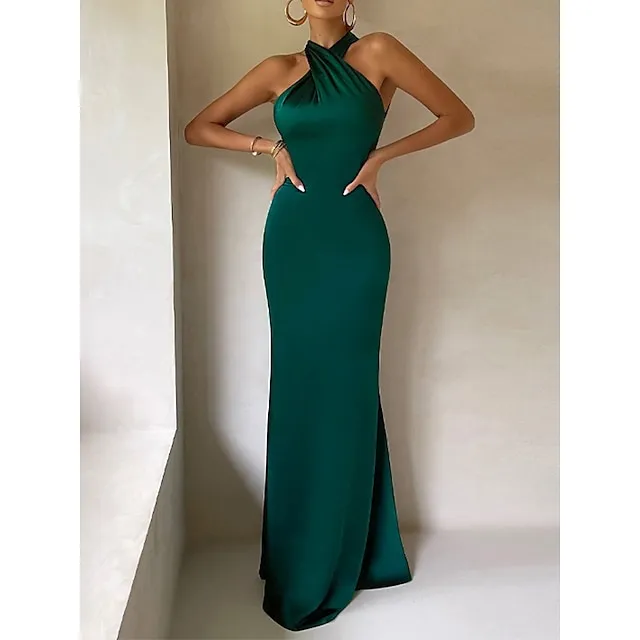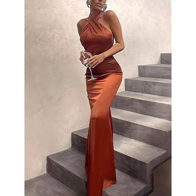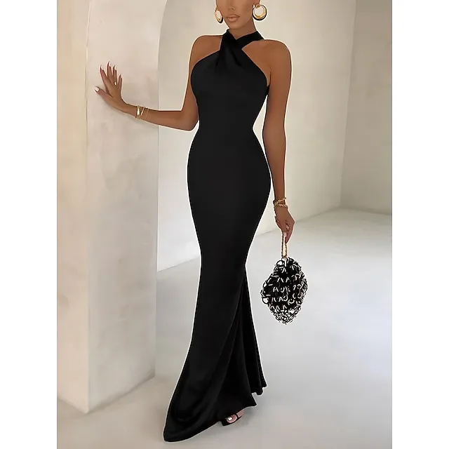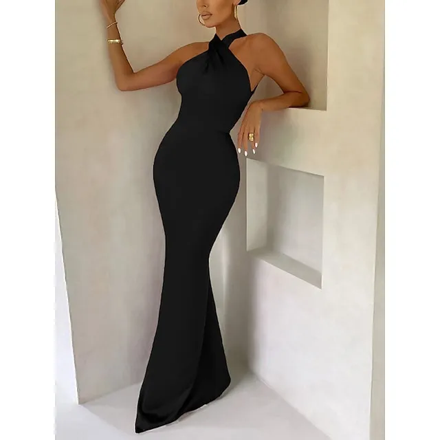 Women‘s Black Dress Prom Dress Party Dress Bodycon Sheath Dress Long Dress Maxi Dress Brown Green Sleeveless Backless Spring Halter Neck Fashion Evening Party Slim