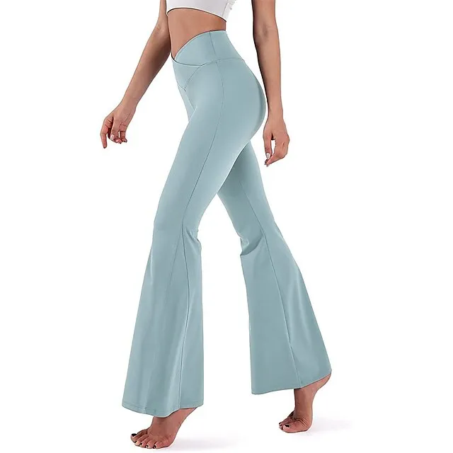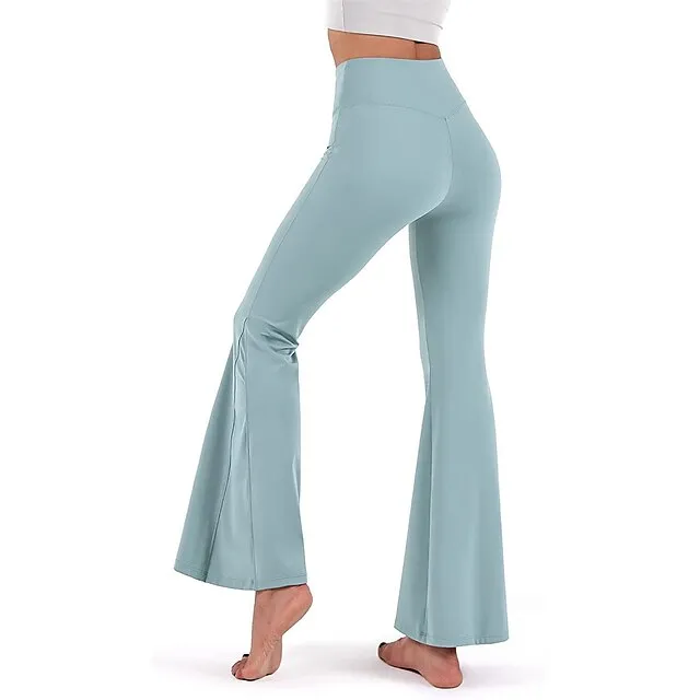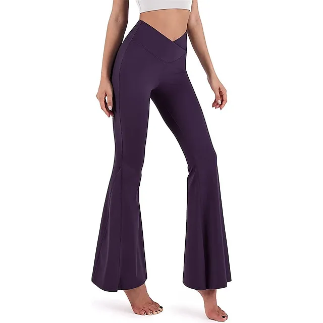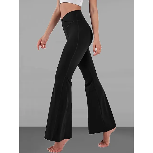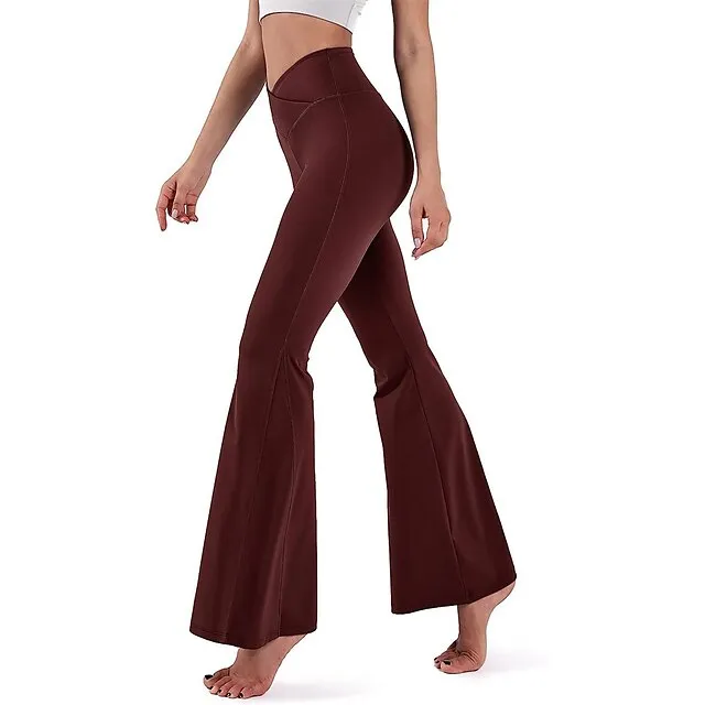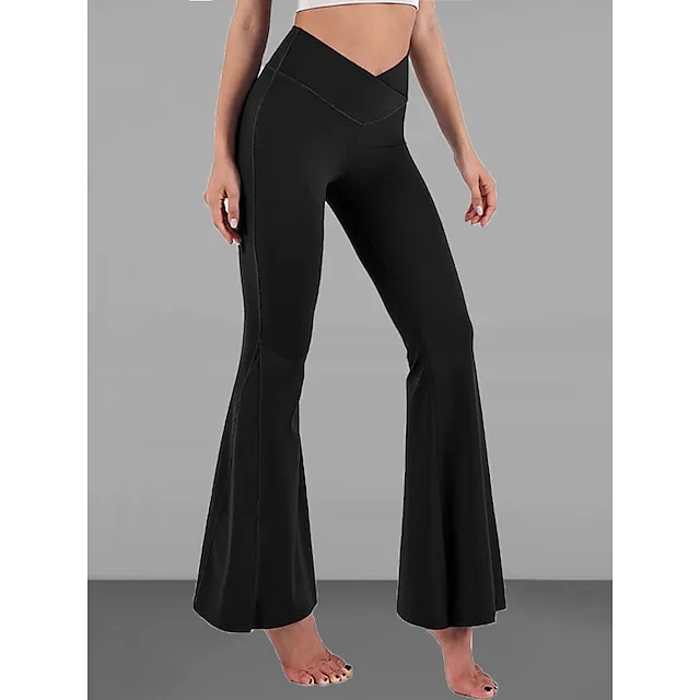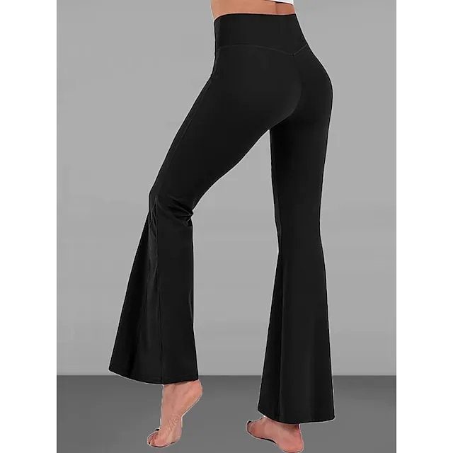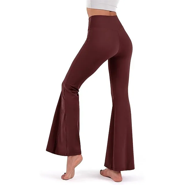 Women’s Bootcut Bell Bottom Pants Trousers Plain High Cut Full Length High Elasticity High Waist Fashion Streetwear Street Causal rice white Wine S M Summer Fall