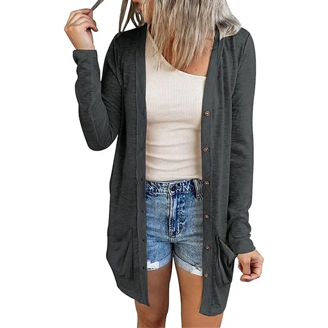 Women’s Cardigan Sweater Cowl Ribbed Knit Polyester Button Summer Spring Outdoor Home Halloween Casual Soft Long Sleeve Solid Color Black White Light Green S M L