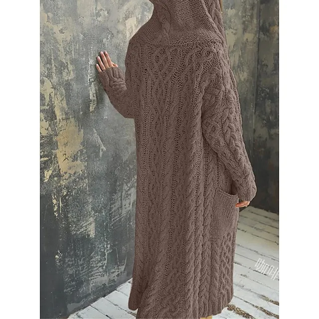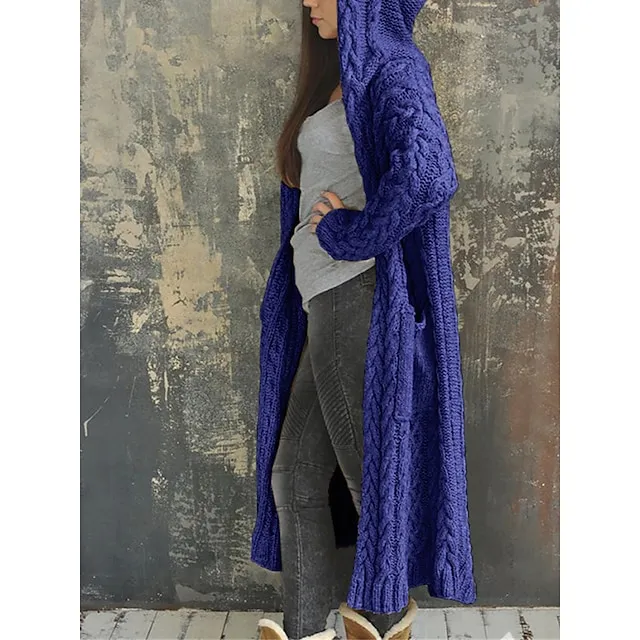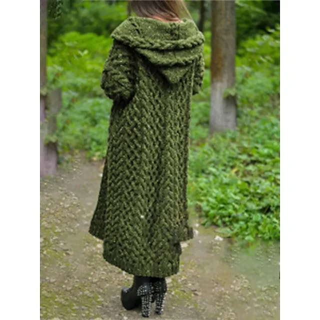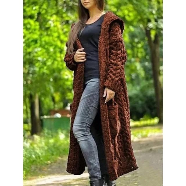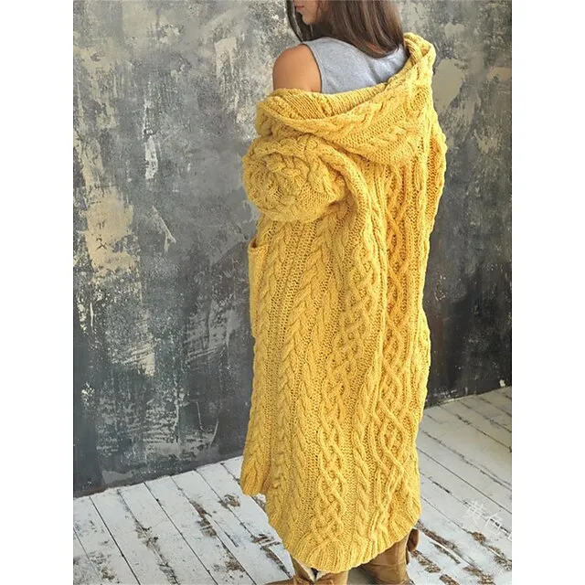 Women’s Cardigan Sweater Hooded Cable Knit Polyester Pocket Hooded Fall Winter Long Outdoor Daily Going out Stylish Casual Soft Long Sleeve Solid Color Black Yellow Pink S M L