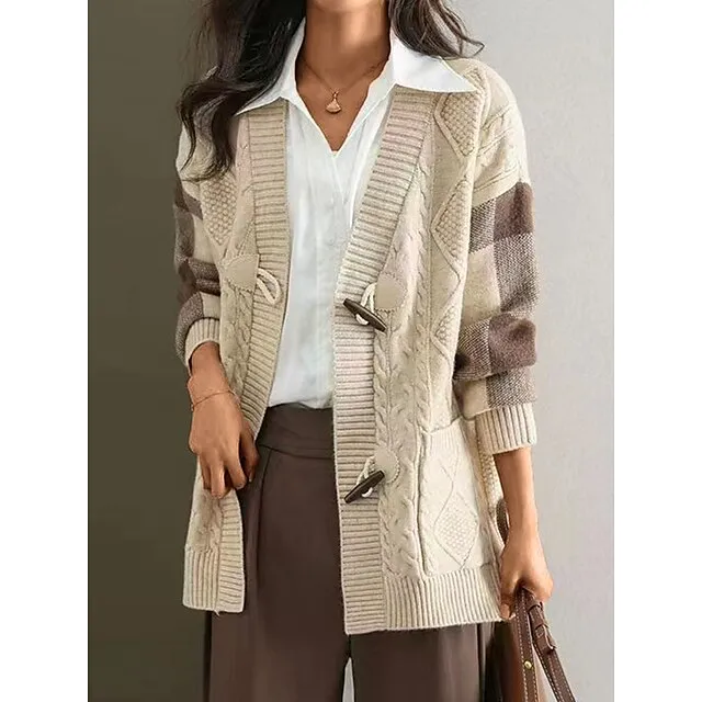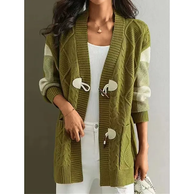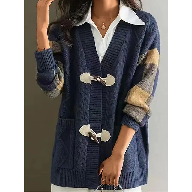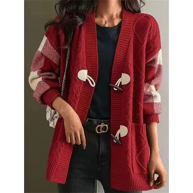 Women’s Cardigan Sweater Jacket V Neck Cable Knit Acrylic Pocket Fall Winter Regular Outdoor Valentine’s Day Daily Stylish Casual Soft Long Sleeve Plaid Red Navy Blue Green S M L