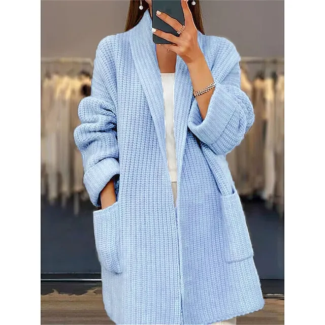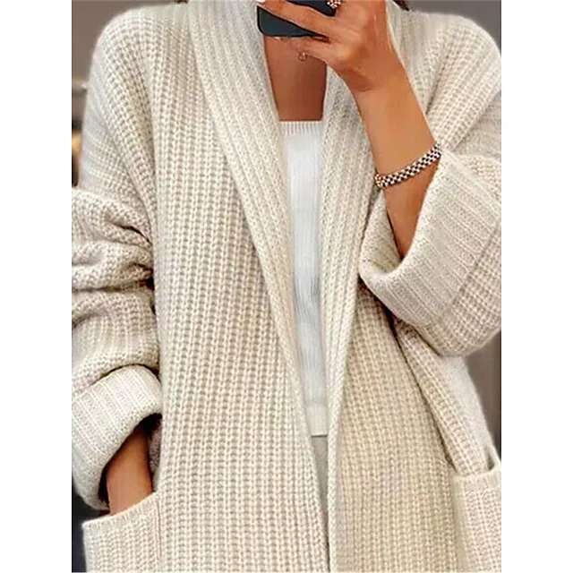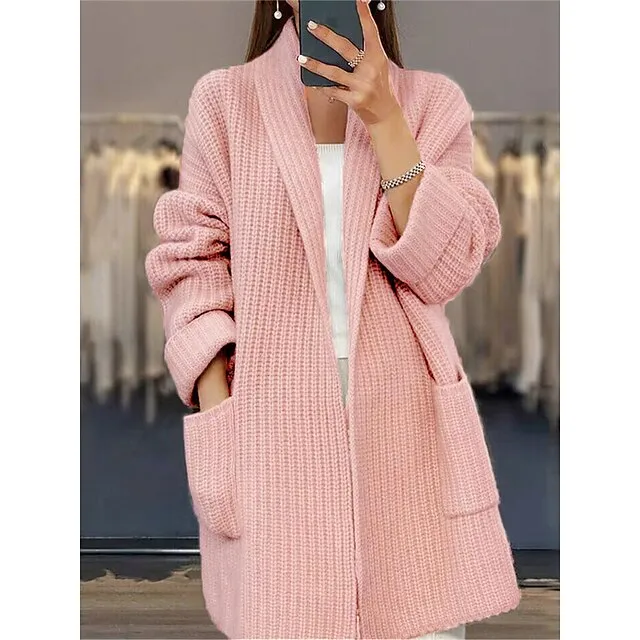 Women’s Cardigan Sweater Open Front Ribbed Knit Acrylic Pocket Fall Winter Long Valentine’s Day Daily Going out Stylish Casual Soft Long Sleeve Solid Color Pink Camel Beige S M L