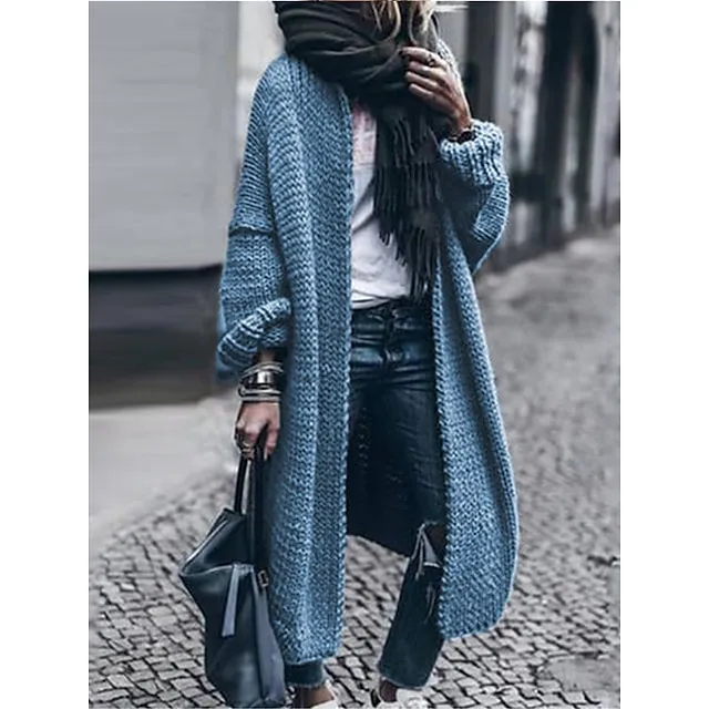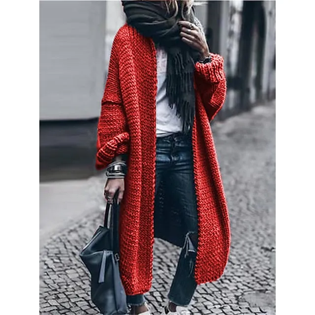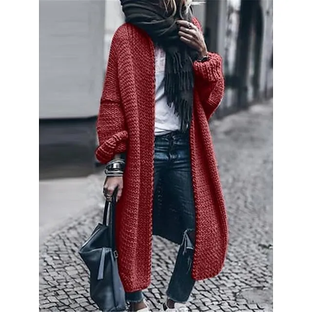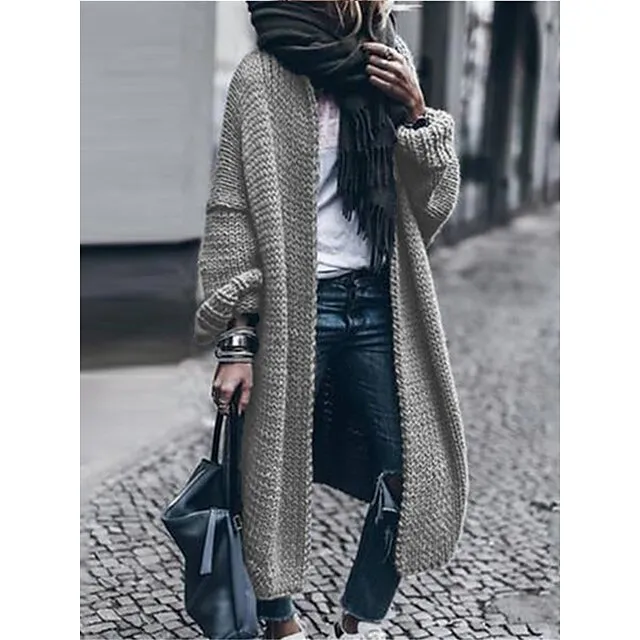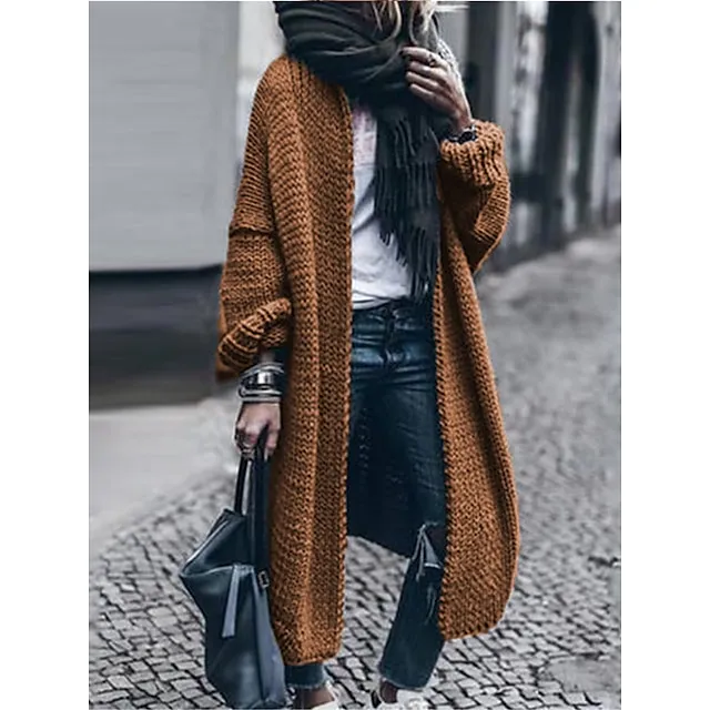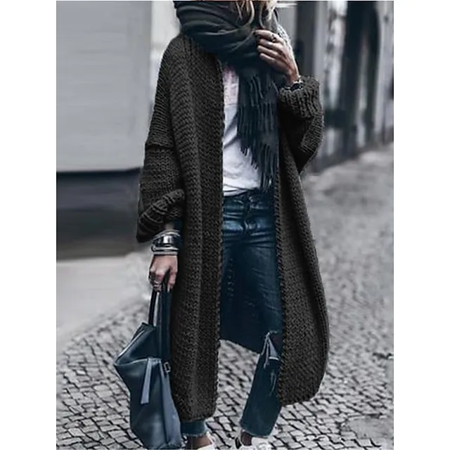 Women’s Cardigan Sweater Open Front Ribbed Knit Polyester Oversized Spring Fall Long Daily Going out Weekend Stylish Casual Soft Long Sleeve Solid Color Maillard Black Wine Army Green S M L