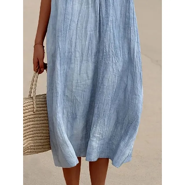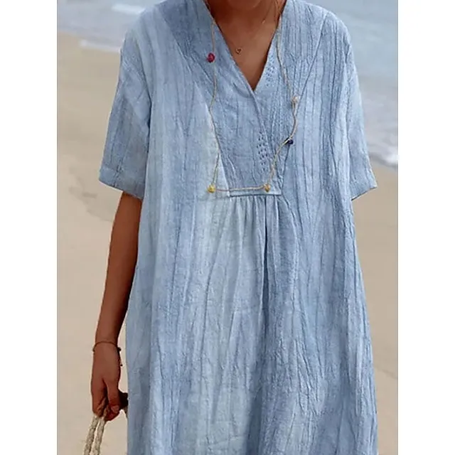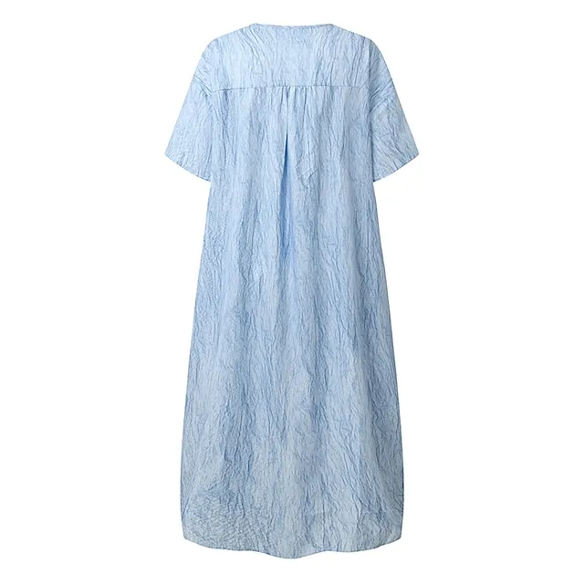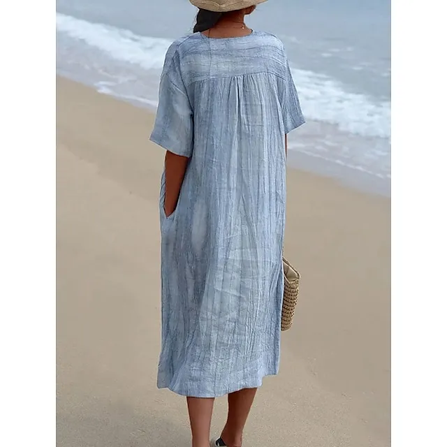 Women‘s Casual Dress Shirt Dress Shift Dress Plain Dress Plain Pocket V Neck Midi Dress Fashion Basic Outdoor Daily Half Sleeve Loose Fit Blue Dark Green Summer Spring S M L XL 2XL