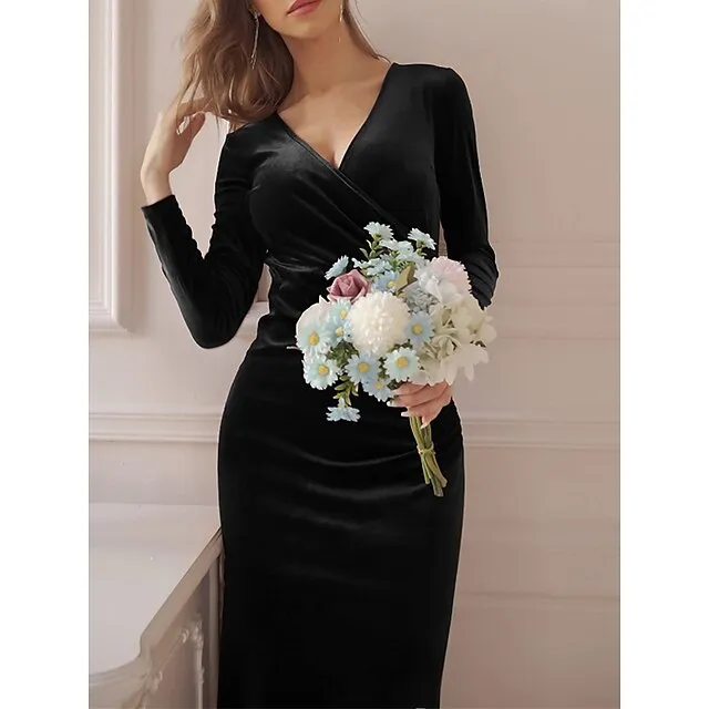 Dresses Type: Wedding Guest Dress, Prom Dress, Formal Dress, Black Dress, Velvet Dress, Party Dress, Trumpet Mermaid Dress, Sheath Dress,