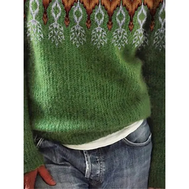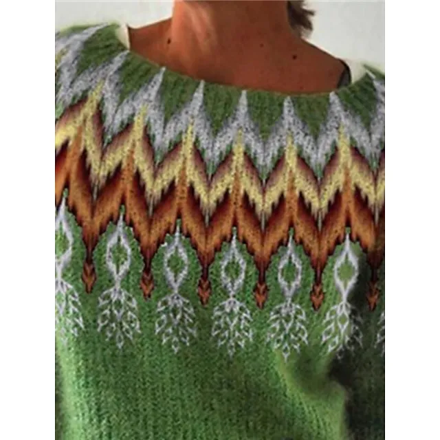 Women’s Crew Neck Pullover Sweater Jumper Ribbed Knit Acrylic Knitted Print Fall Winter Regular Outdoor Daily Going out Stylish Casual Soft Long Sleeve Striped Print Blue Green S M L