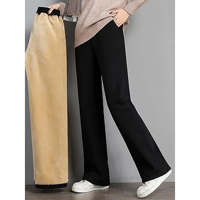 Women‘s Fleece Pants Sweatpants Pants Trousers Full Length Fashion Streetwear Street Daily Black Grey M L Winter