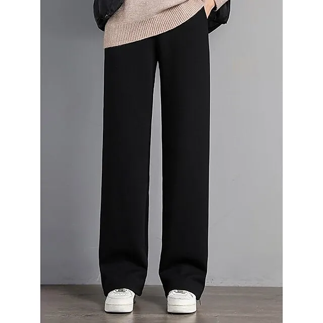 Women’s Wide Leg Pants Trousers Linen Cotton Blend Plain Full Length Micro-elastic Mid Waist Fashion Streetwear Street Daily Black White S M Fall Winter