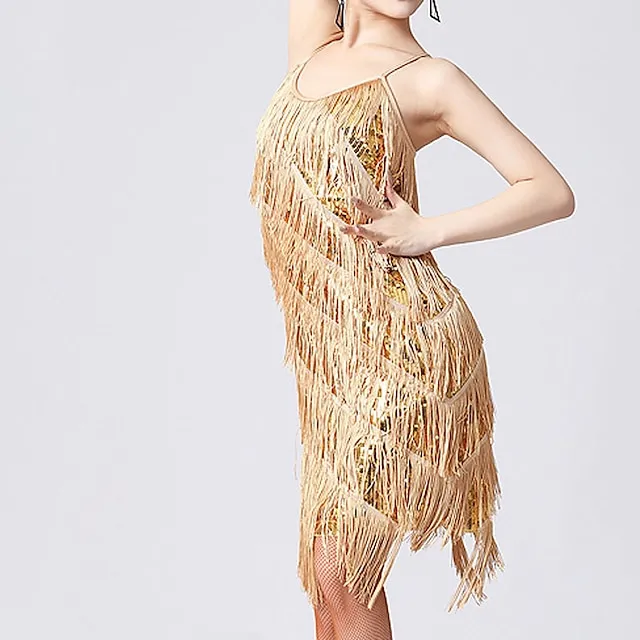Women’s Gold Sequin Dress Fringe Dress Gold Dress Party Dress Sparkly Dress Midi Dress Silver Black White Sleeveless Spring Fall Spaghetti Strap Fashion Dress