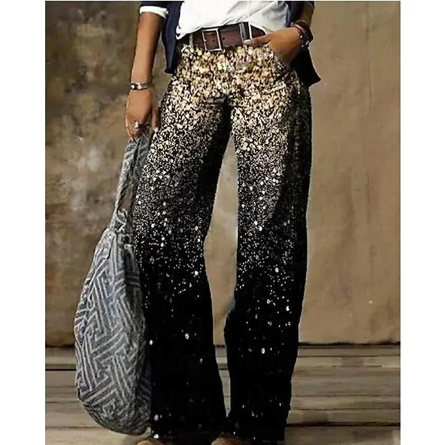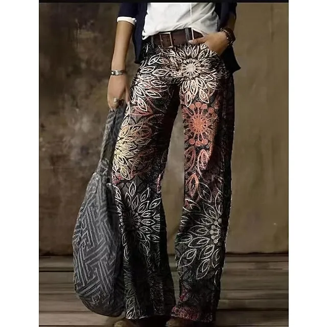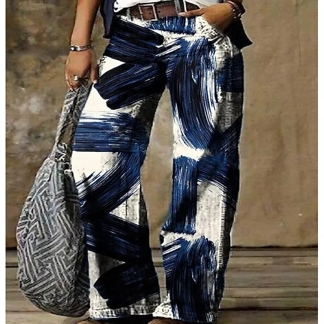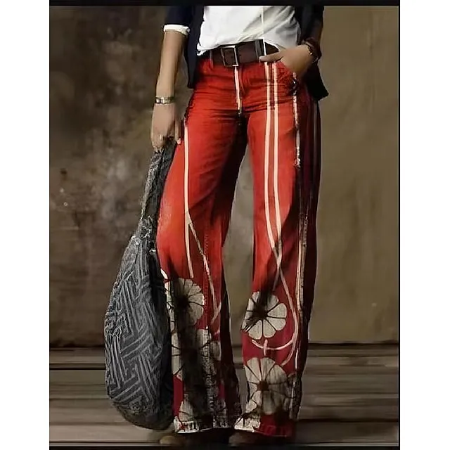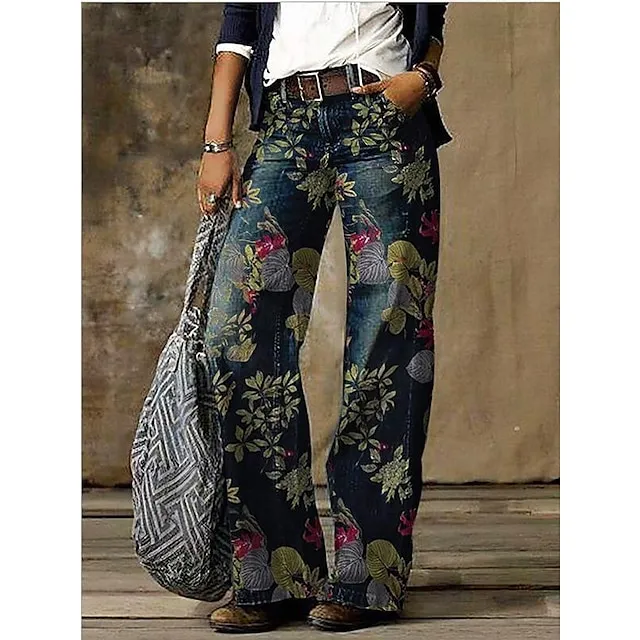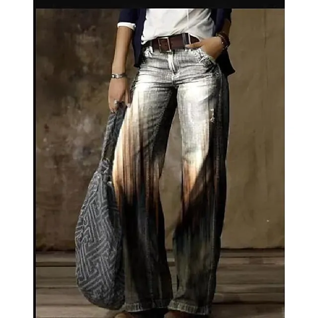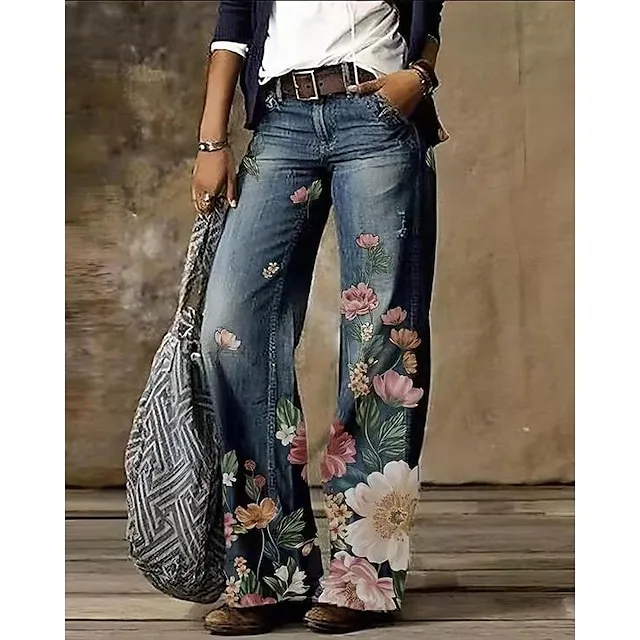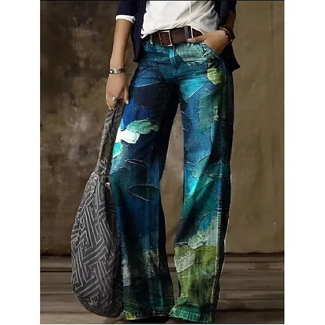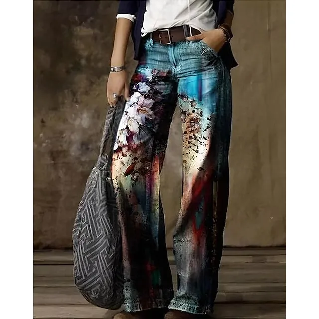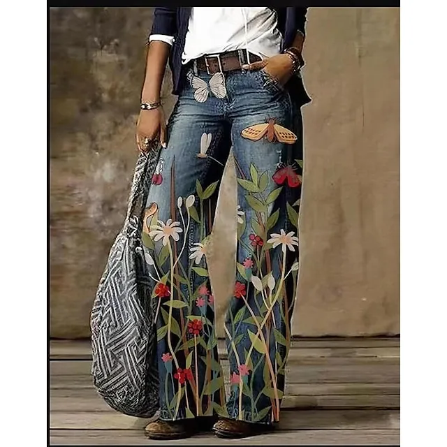 Women’s Jeans Bootcut Wide Leg Faux Denim Butterfly Tie Dye Flower / Floral Side Pockets Wide Leg Full Length High Elasticity Mid Waist Fashion Casual Weekend 1 2 S M