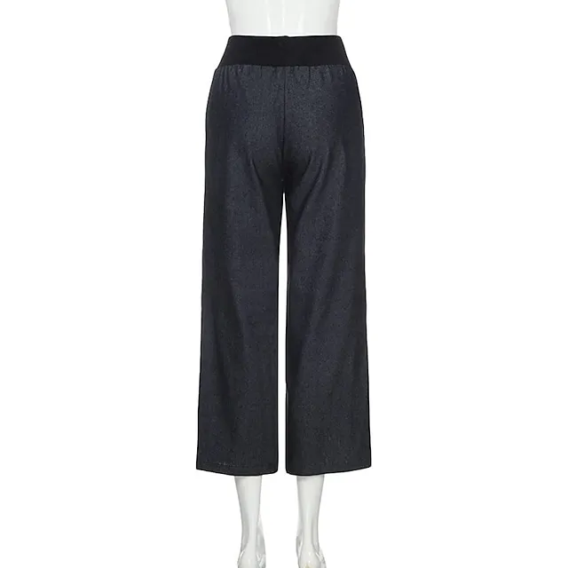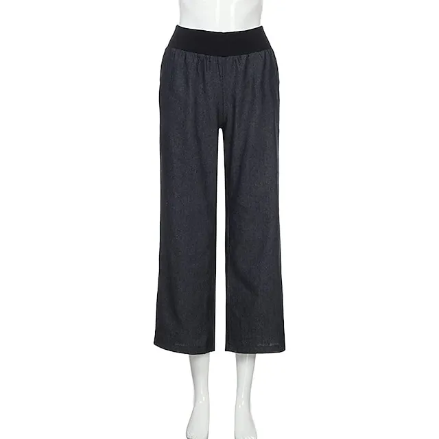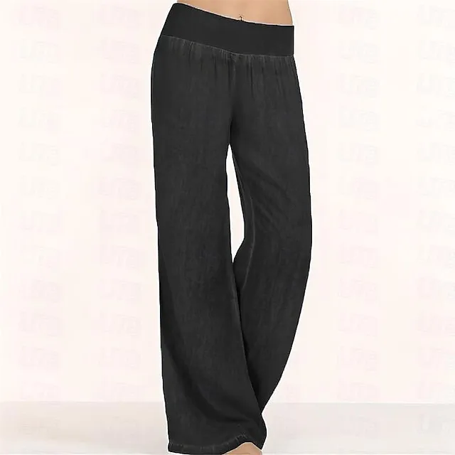 Women’s Dress Pants Wide Leg Chinos Plain Baggy Ankle-Length Micro-elastic Mid Waist Fashion Streetwear Daily Weekend Black S M Summer Spring & Fall