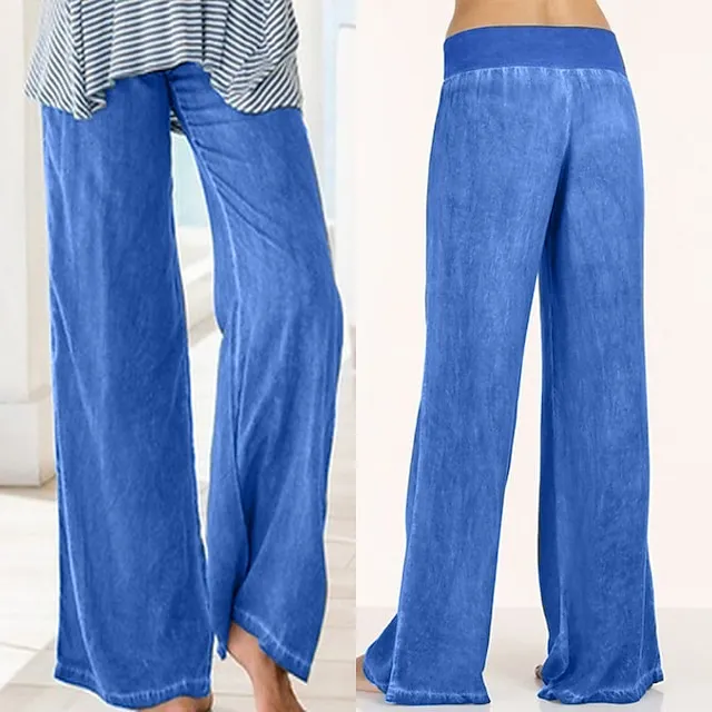 Women’s Wide Leg Chinos Pants Trousers Plain Wide Leg Baggy Full Length Micro-elastic Mid Waist Stylish Casual Valentine’s Day Daily Black White M L Summer Spring