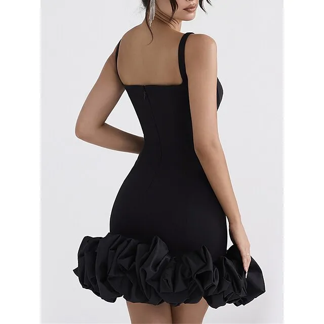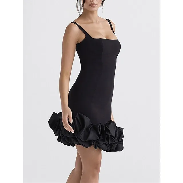 Women‘s Little Black Dress Sexy Dress Party Dress Homecoming Dress Mini Dress White Sleeveless Ruffle Fall Autumn Spaghetti Strap Fashion Vacation