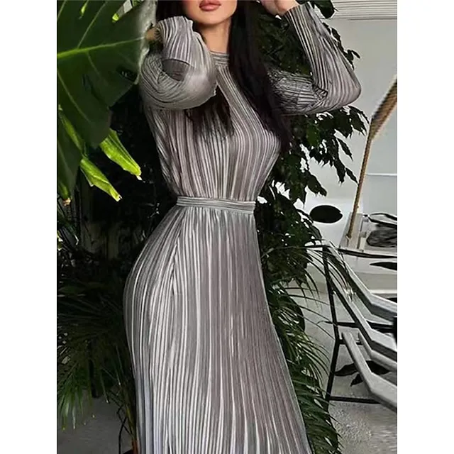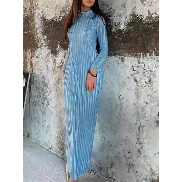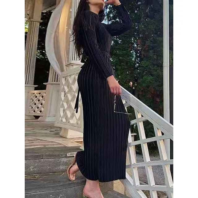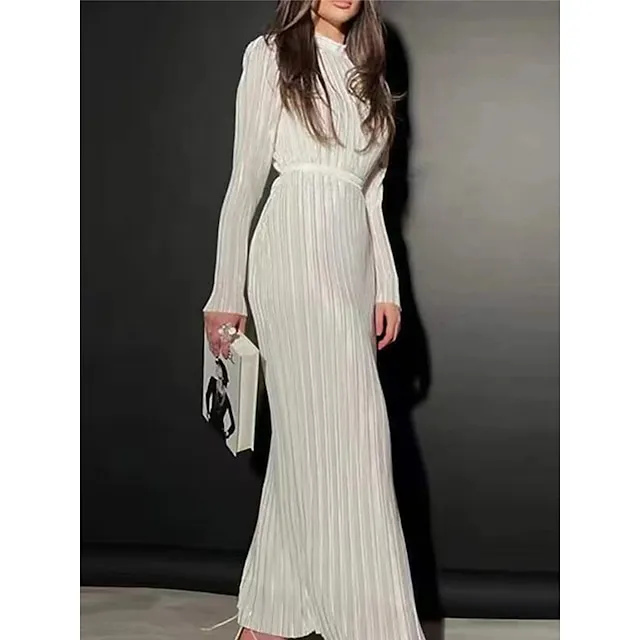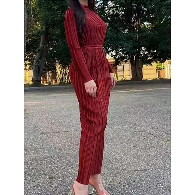 Women’s Party Dress Cocktail Dress Wedding Guest Dress Long Dress Maxi Dress Black White Wine Long Sleeve Pure Color Ruched Fall Winter Autumn Crew Neck Fashion Winter Dress Wedding Guest Birthday