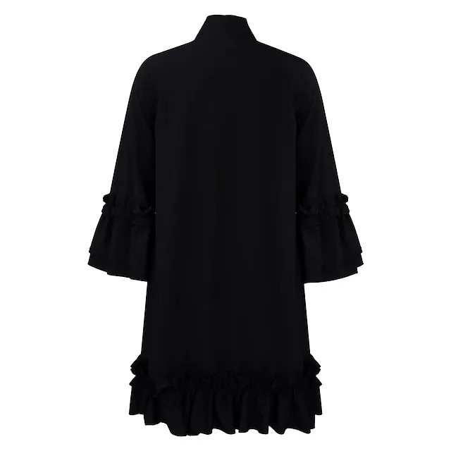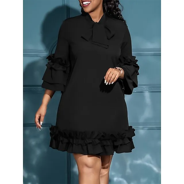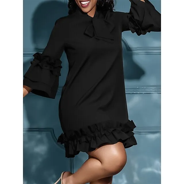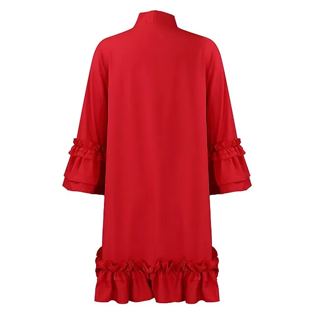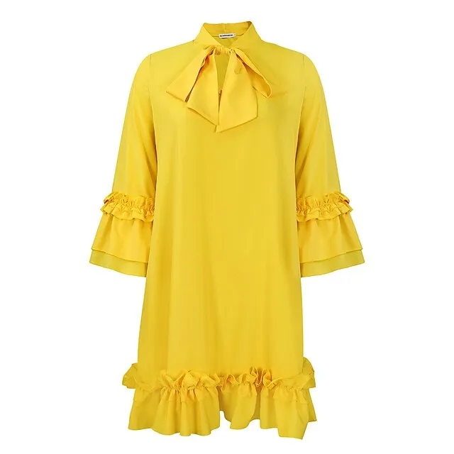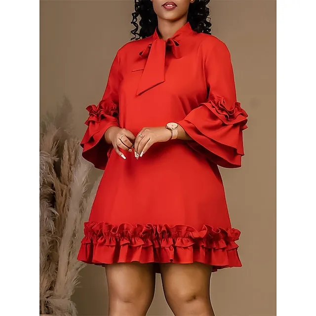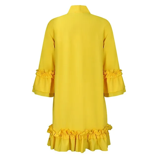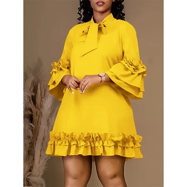 Women’s Party Dress Cocktail Dress Wedding Guest Dress Midi Dress Black Yellow Red Long Sleeve Plain Ruffle Summer Spring Fall V Neck Party Winter Dress Wedding Guest Birthday S M L XL XXL 3XL