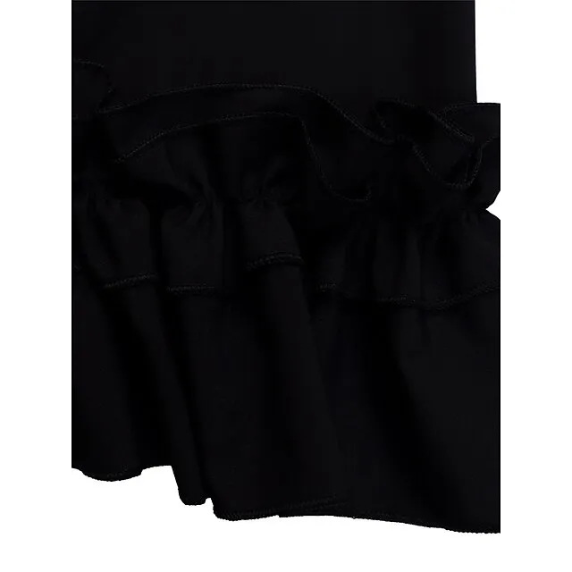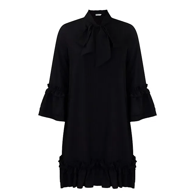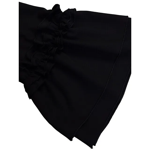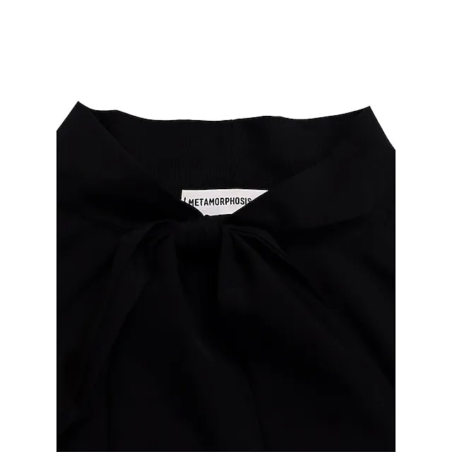 – Features a bow and ruffle design