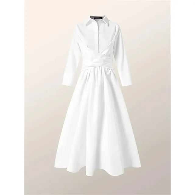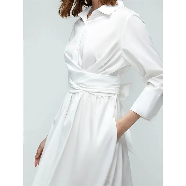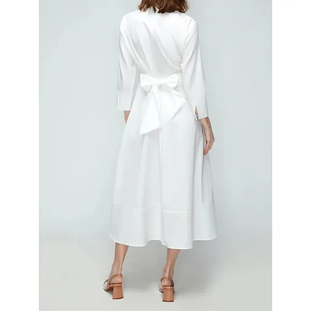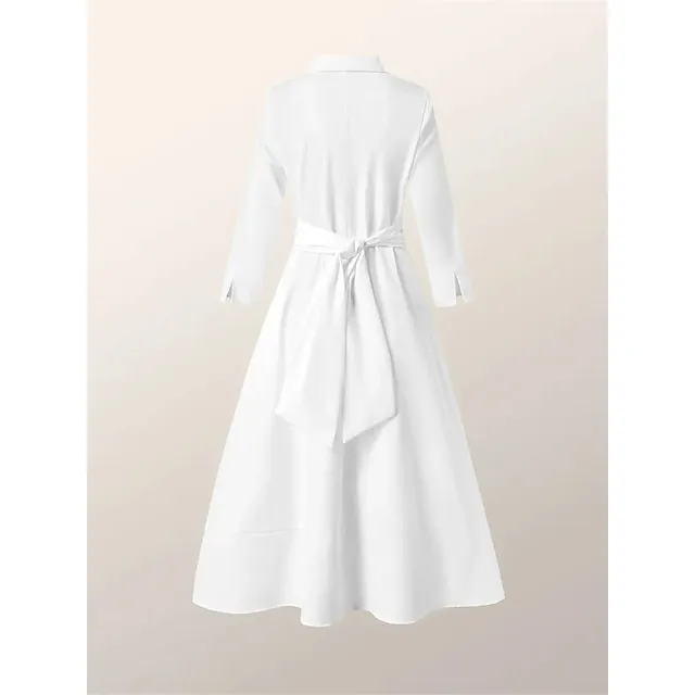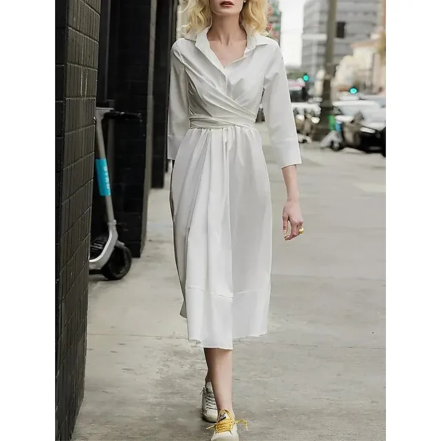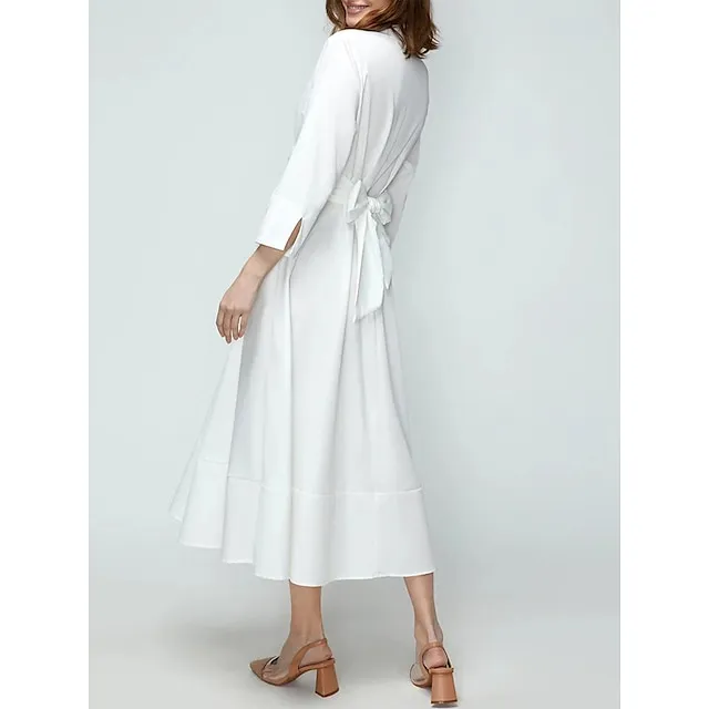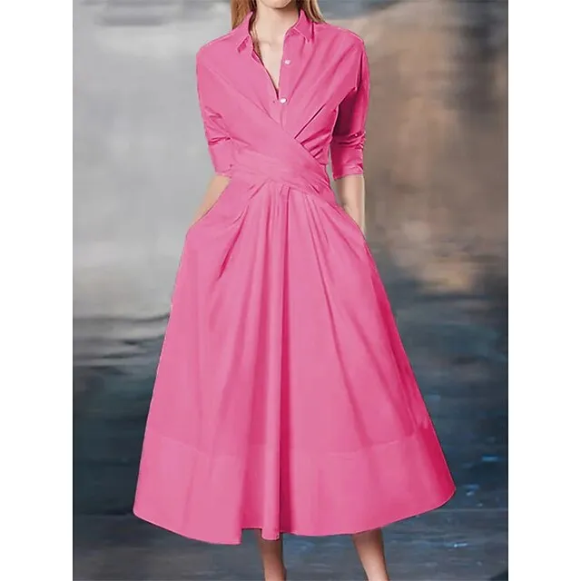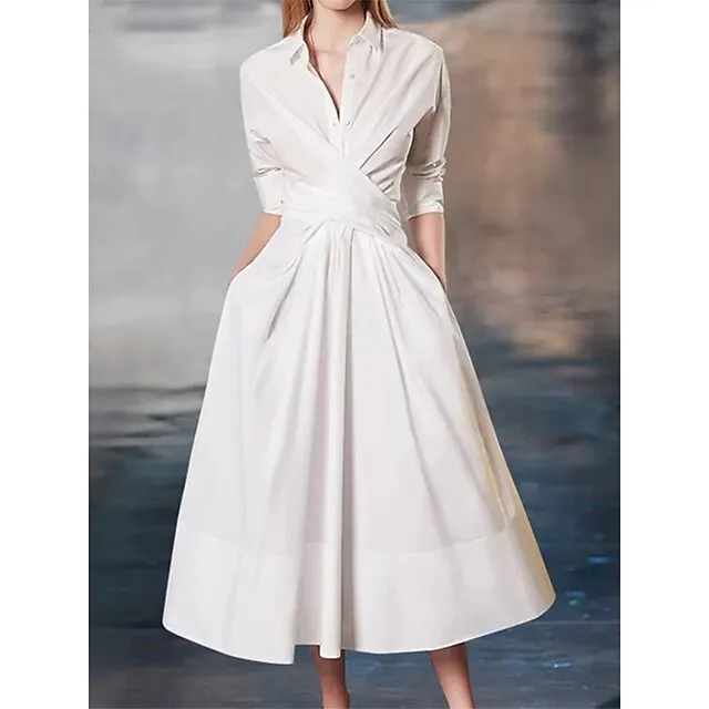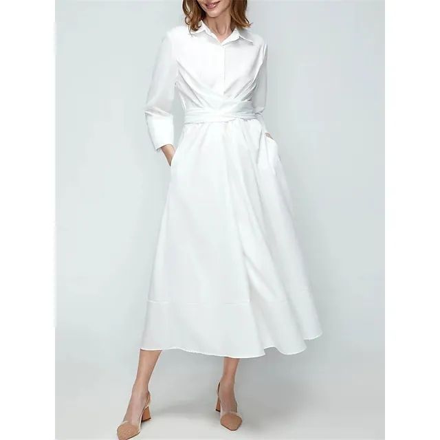 Women’s Party Dress Cocktail Dress Wedding Guest Dress Midi Dress White Pink Blue 3/4 Length Sleeve Plain Pocket Summer Spring Fall Shirt Collar Elegant Office Wedding Guest Vacation S M L XL XXL