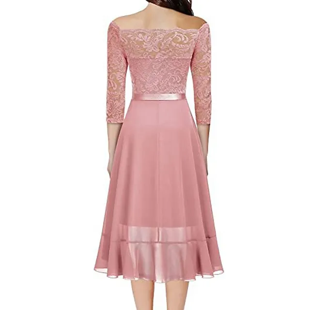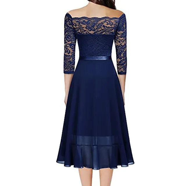 Women’s Party Dress Lace Dress Wedding Guest Dress Midi Dress Pink Purple Dark Blue Half Sleeve Pure Color Lace Spring Fall Winter Crew Neck Fashion Winter Dress Wedding Guest Evening Party S M