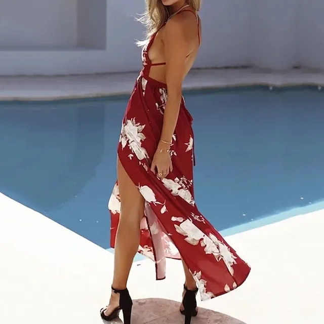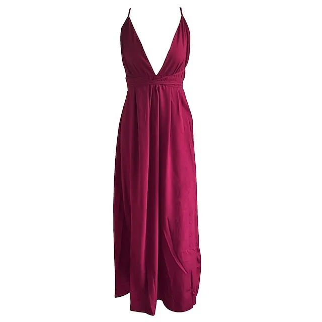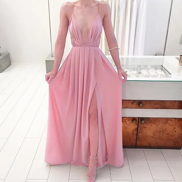 Women’s Party Dress Strap Dress A Line Dress Long Dress Maxi Dress Black White Pink Sleeveless Pure Color Split Summer Spring Deep V Stylish S M L