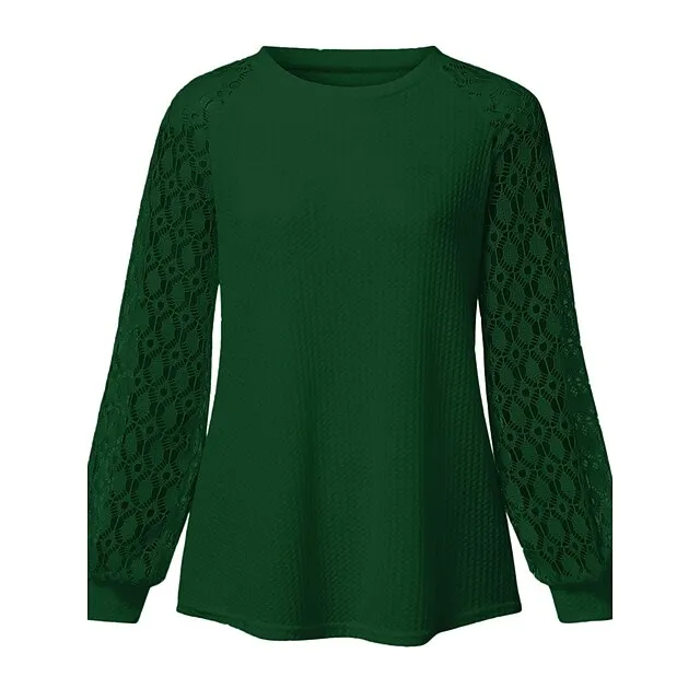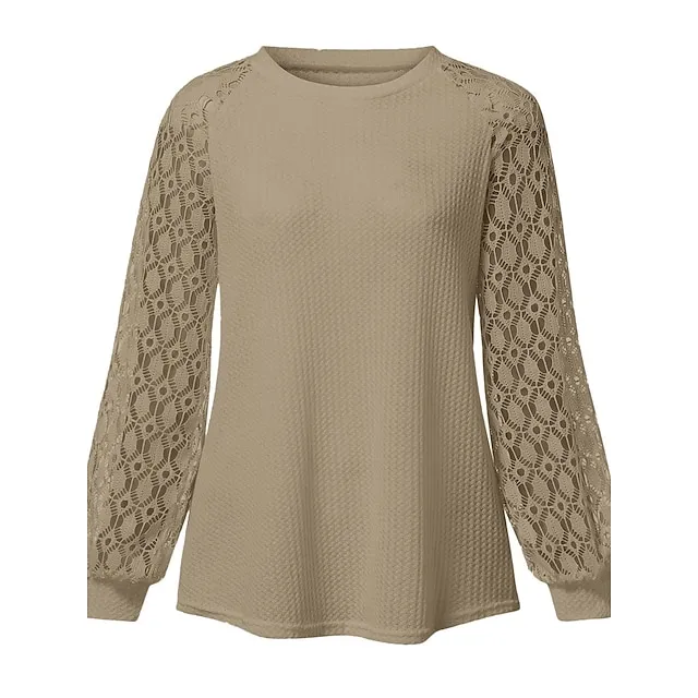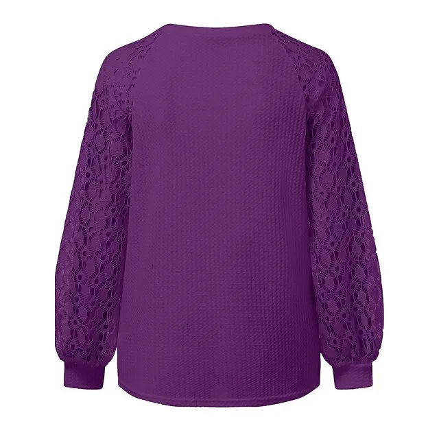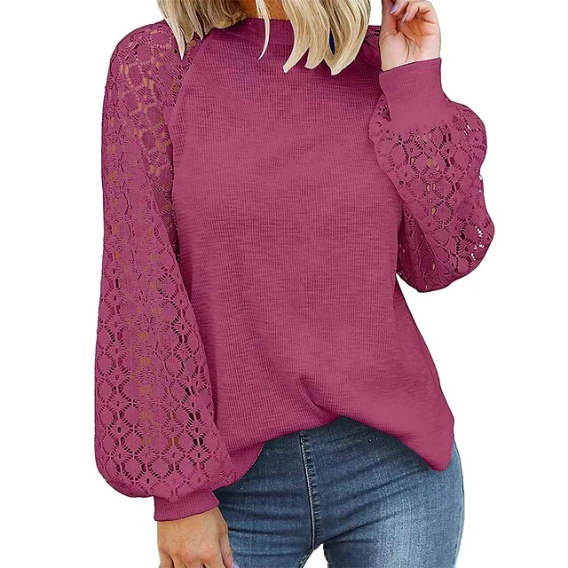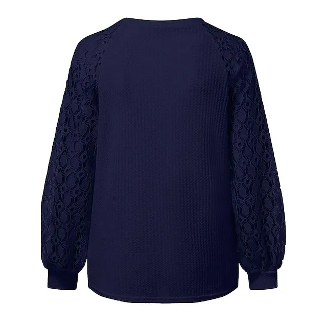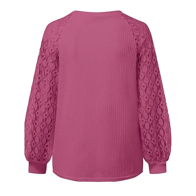 Women’s Pullover Sweater Jumper Crew Neck Ribbed Knit Polyester Patchwork Summer Fall Outdoor Daily Going out Stylish Casual Soft Long Sleeve Solid Color Black Pink Navy Blue S M L