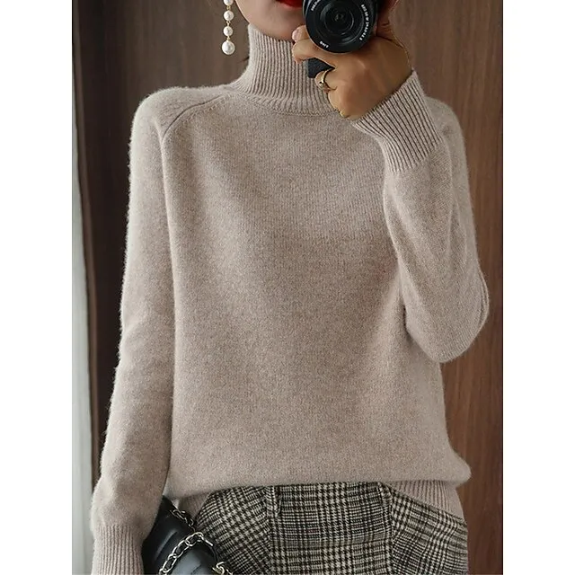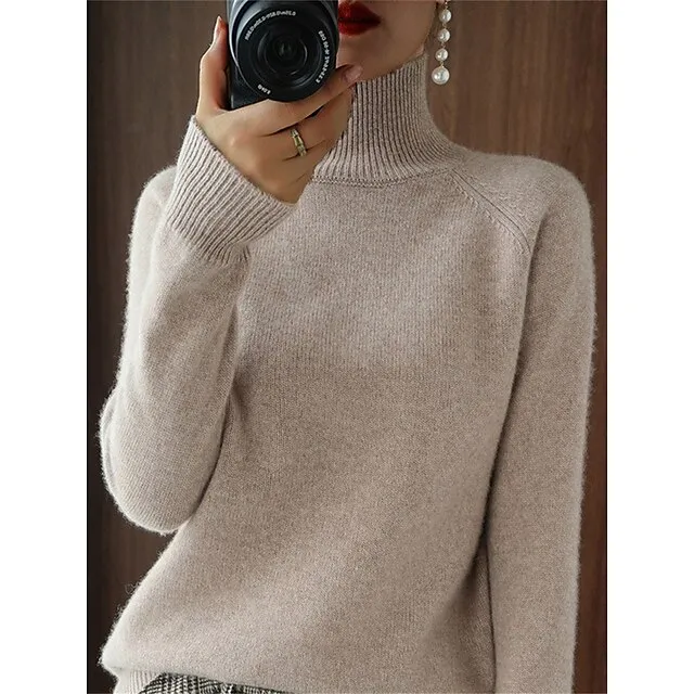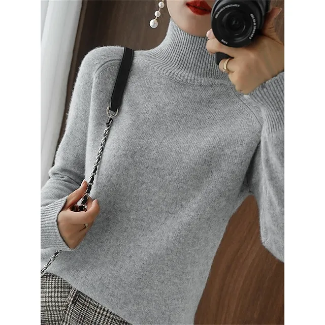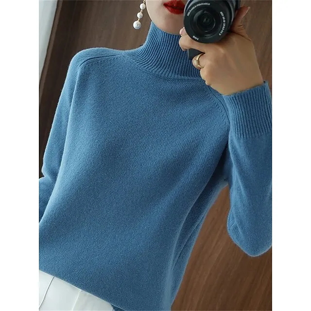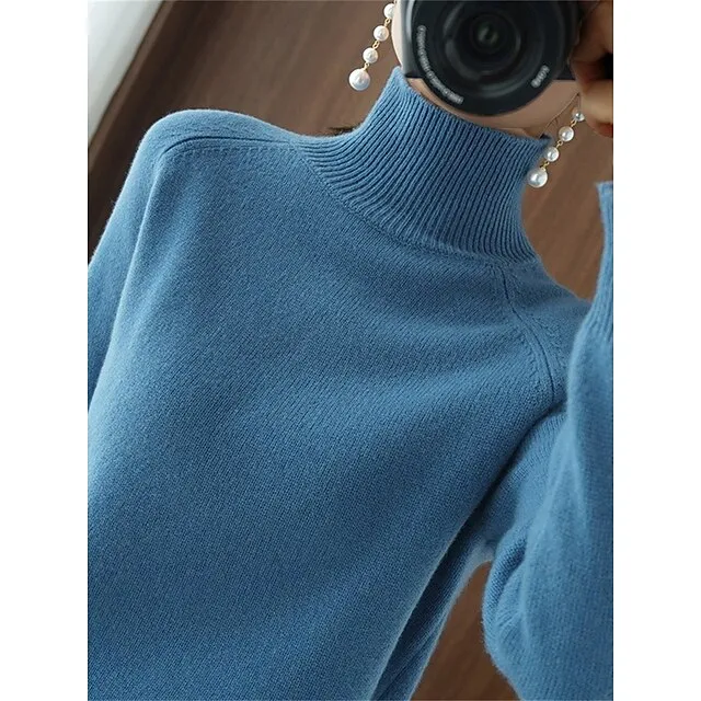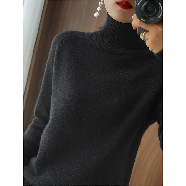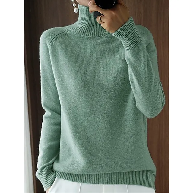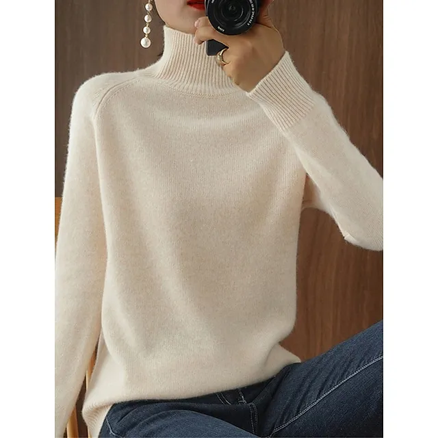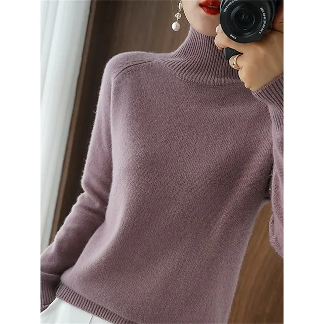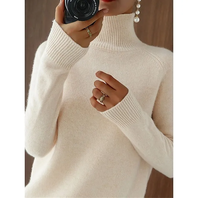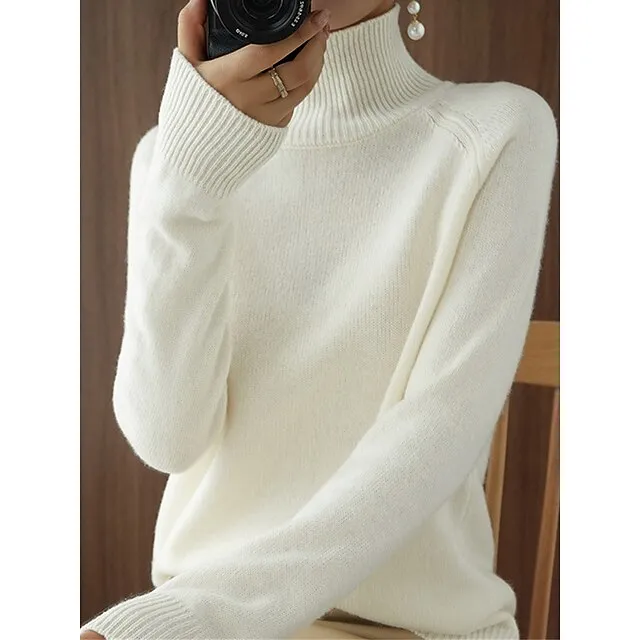Women’s Pullover Sweater Jumper Stand Collar Ribbed Knit Polyester Knitted Fall Winter Regular Outdoor Daily Holiday Fashion Streetwear Casual Long Sleeve Solid Color Black White Pink M L XL