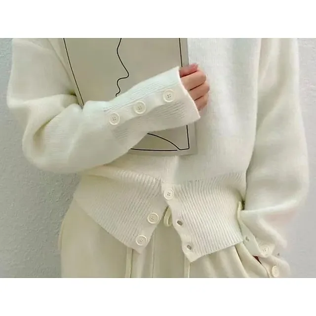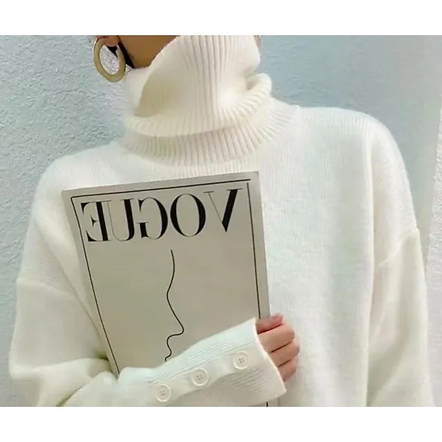 Women’s Pullover Sweater Jumper Turtleneck Crochet Knit Knit Button Knitted Fall Winter Cropped Daily Holiday Stylish Casual Long Sleeve Solid Color White S M L