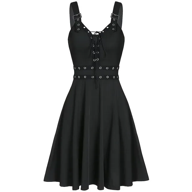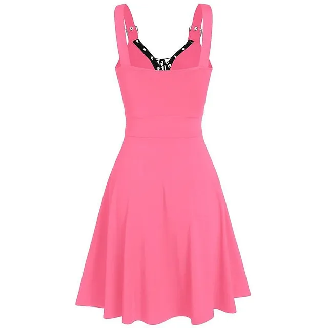Women’s Retro 1950s Vintage Dress Mini Dress Daily Holiday Lace up Backless Plain V Neck Sleeveless Regular Fit Spring Fall Black Pink S M L XL