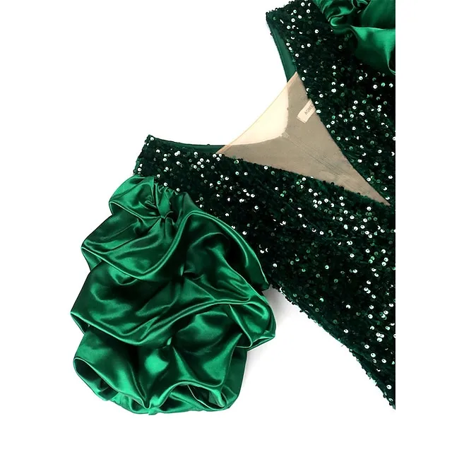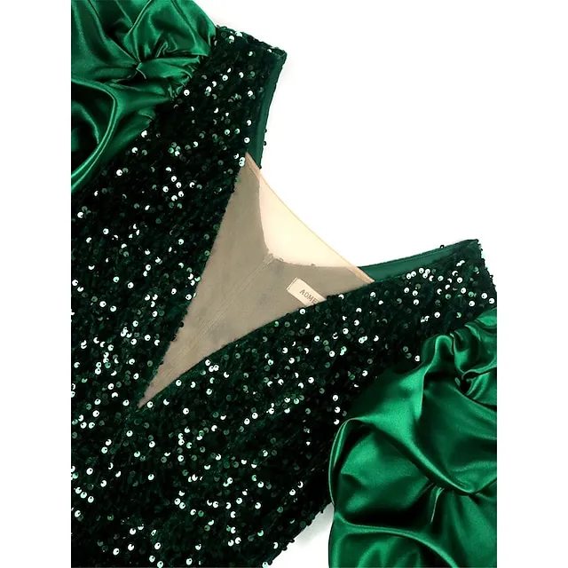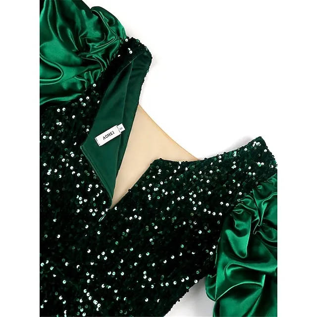 Women’s Sequin Dress Party Dress New Year’s Eve Dress Sparkly Dress Christmas Cocktail Dress Midi Dress Red Dark Green Short Sleeve Sparkly Glitter Summer Spring