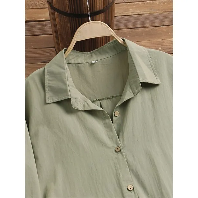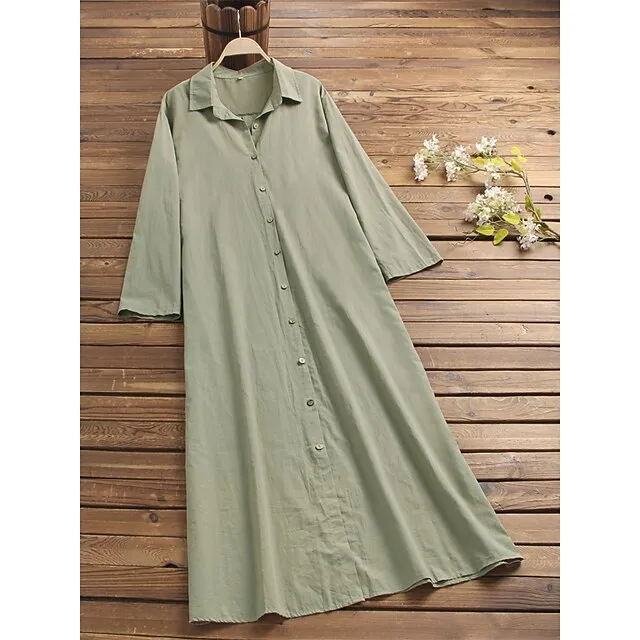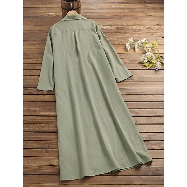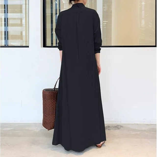 Women’s Shirt Dress Maxi long Dress Long Sleeve Solid Color Pocket Button Spring Summer Shirt Collar Elegant Casual Loose S M L XL XXL XXXL 4XL 5XL