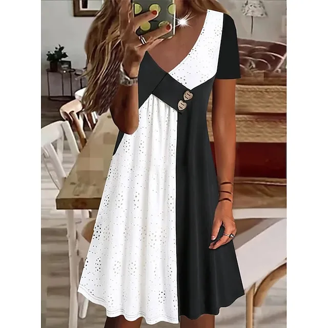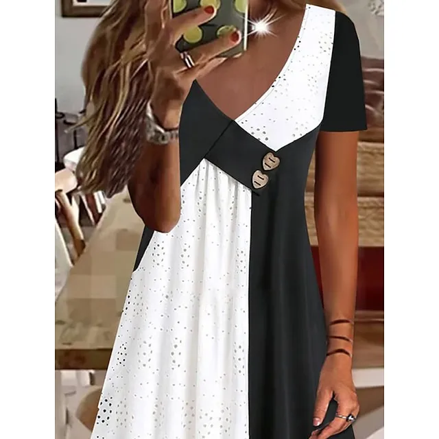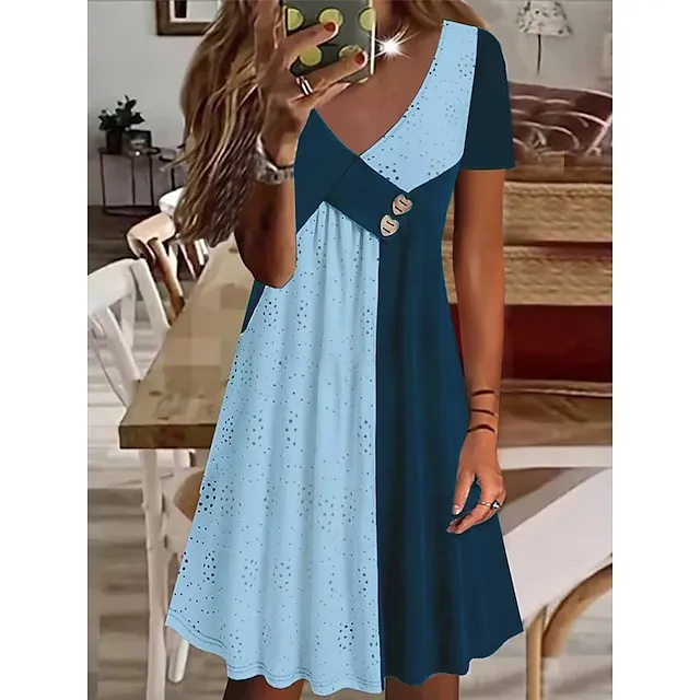 Women’s Summer Dress Pleated Dress Color Block Plain Ruched V Neck Mini Dress Active Fashion Daily Holiday Short Sleeve Regular Fit Black Blue Green Summer Spring S M L XL XXL