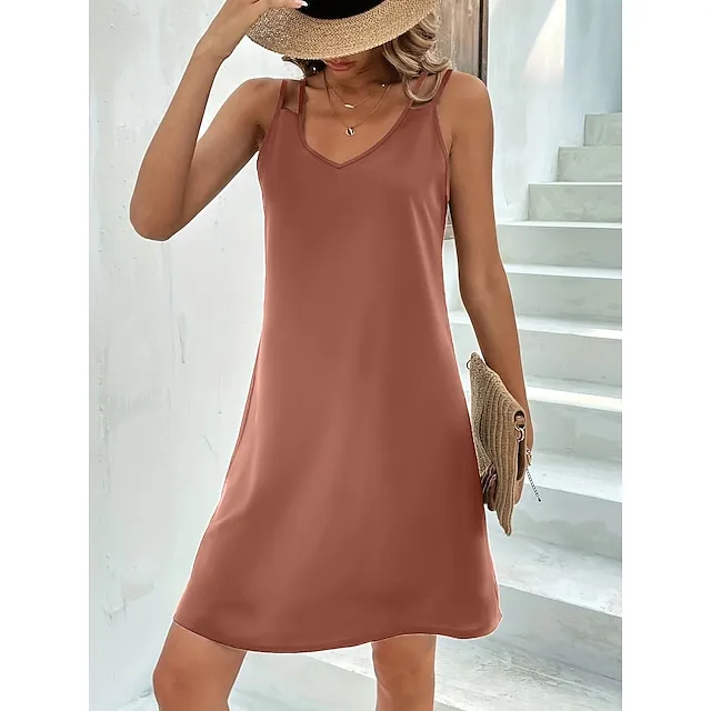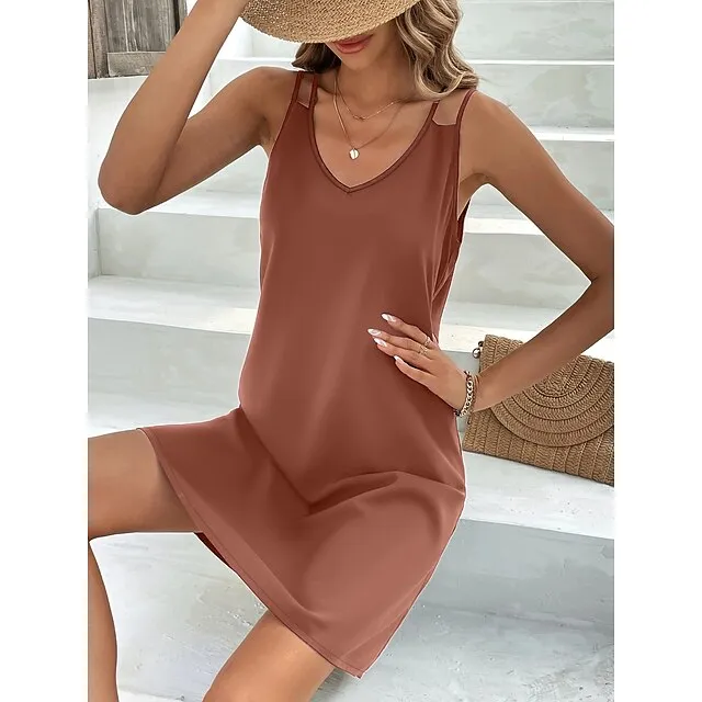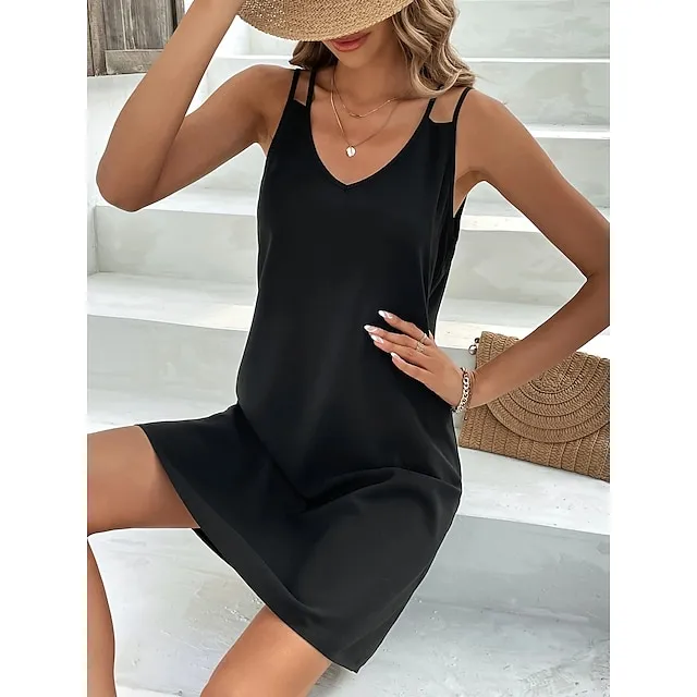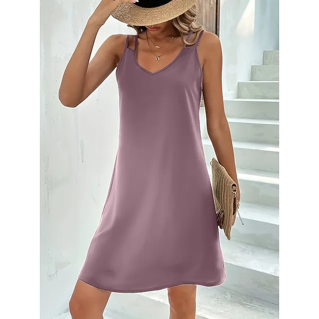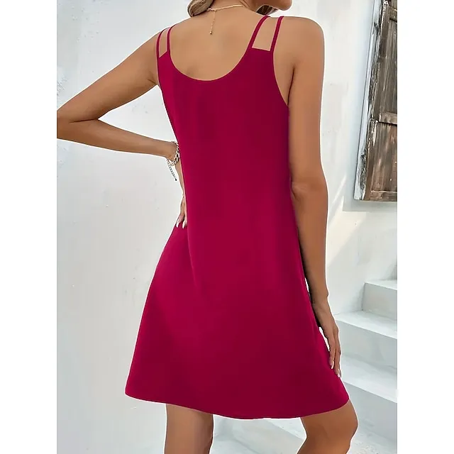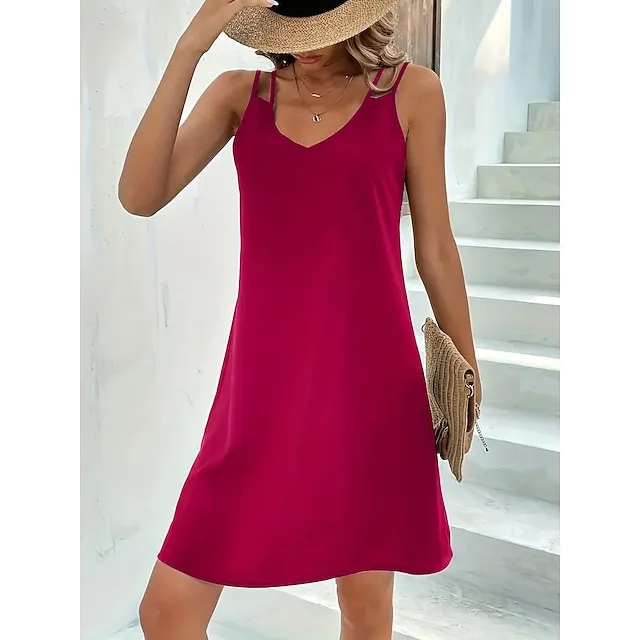 Women’s Summer Dress Slip Dress Mini Dress Hollow Out Daily Beach Fashion V Neck Sleeveless Regular Fit Black Red Purple Color S M L XL 2XL Size