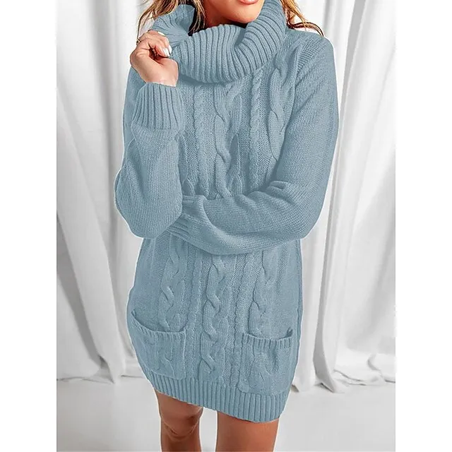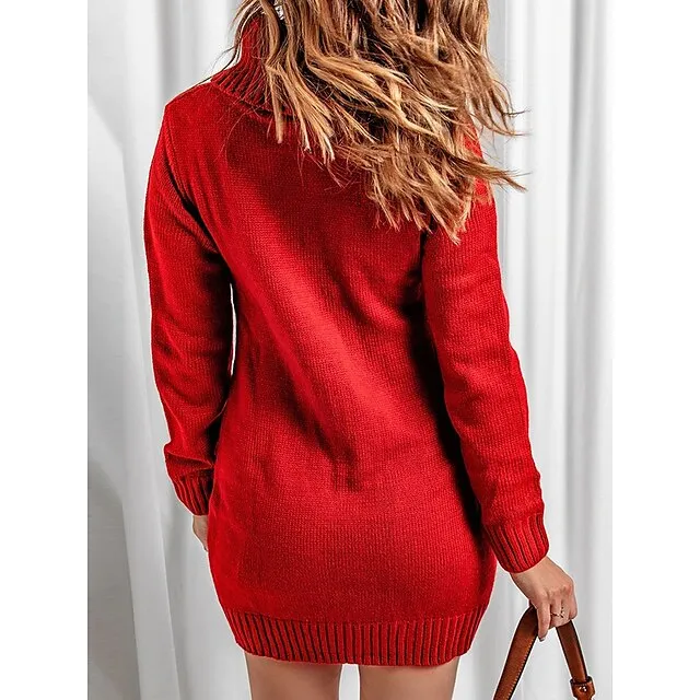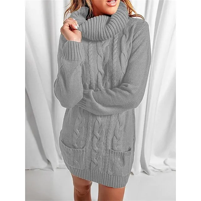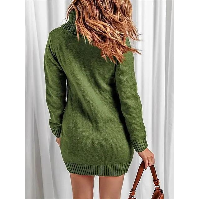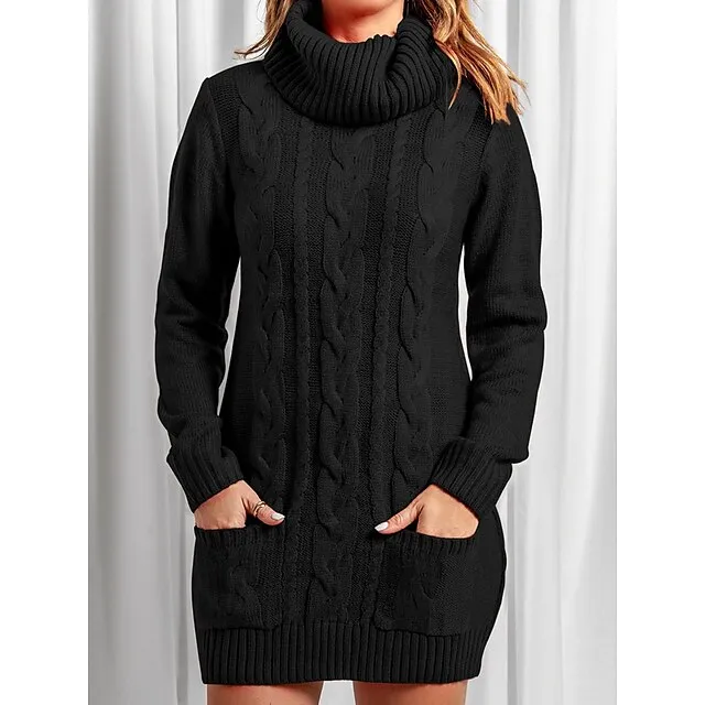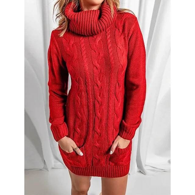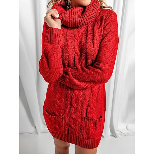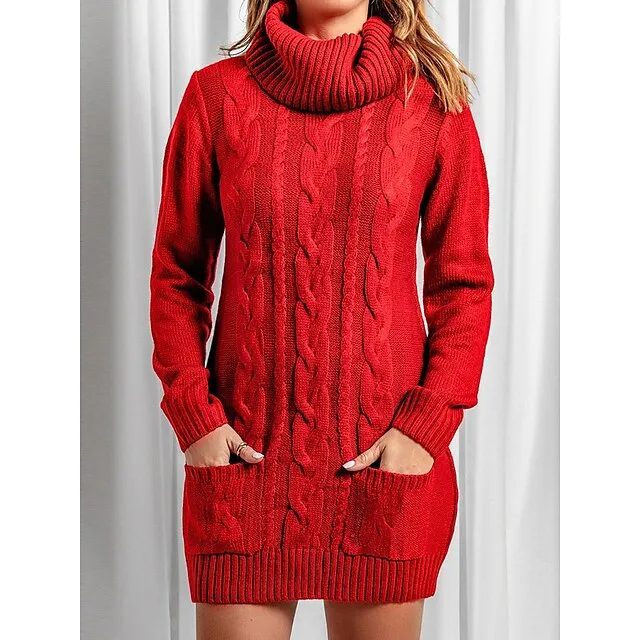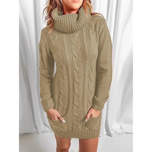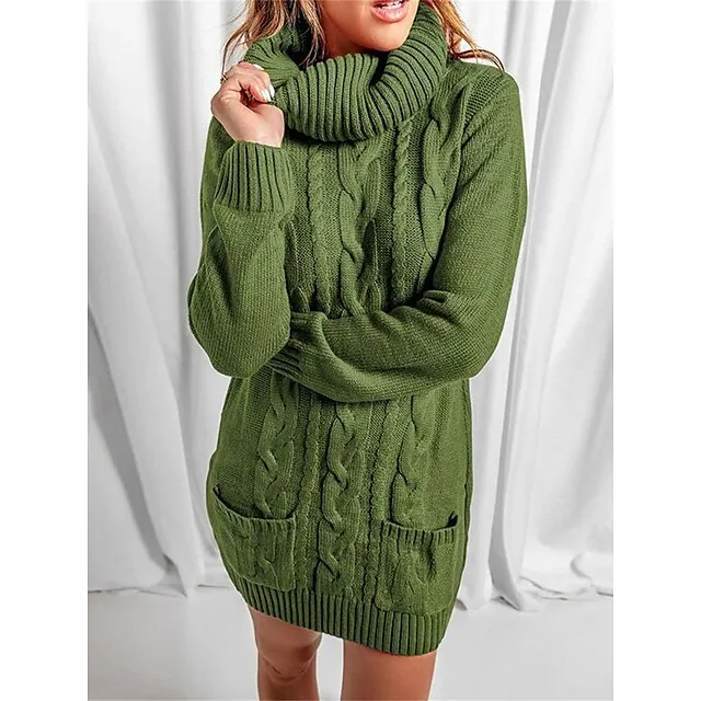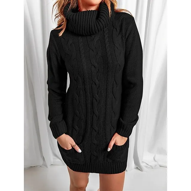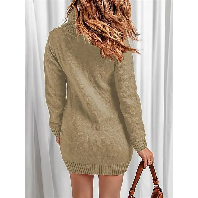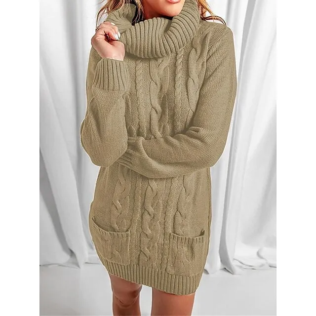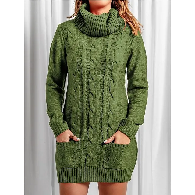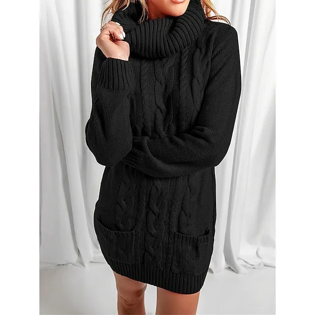 Women’s Sweater Dress Jumper Dress Casual Dress Mini Dress Knitwear Fashion Streetwear Outdoor Street Daily Going out Turtleneck Long Sleeve Pocket Loose Fit Black Red Khaki S M L XL XXL 3XL