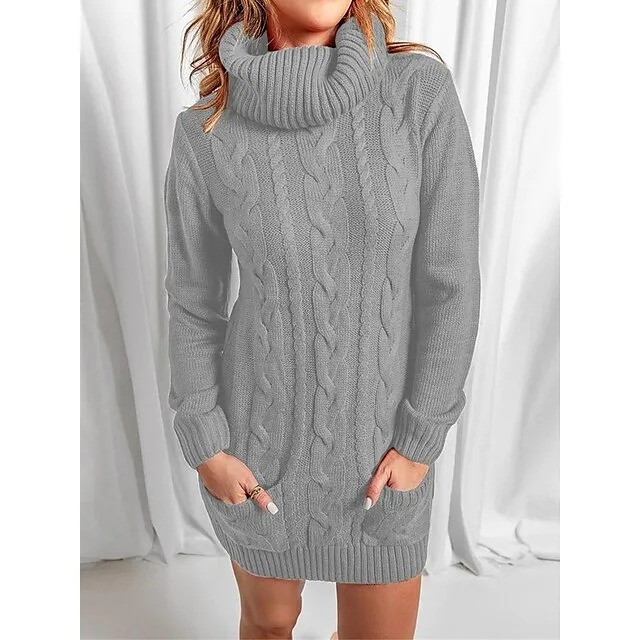 Dresses Type: Casual Dress, Sweater Dress, Jumper Dress, Plain Dress, Winter Dress,