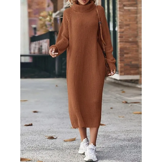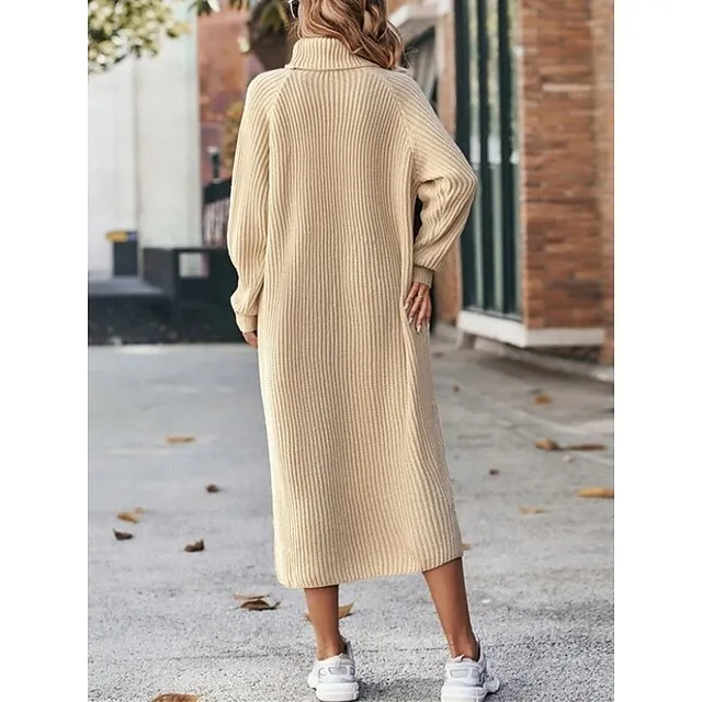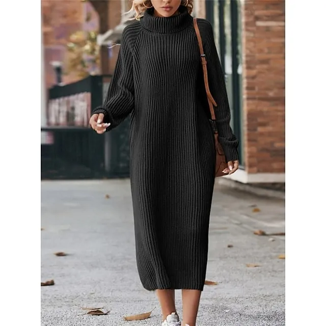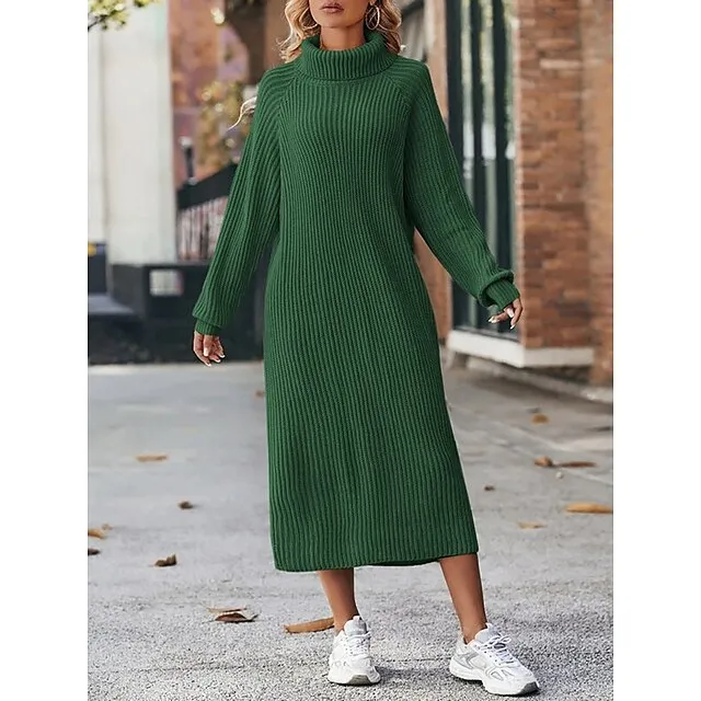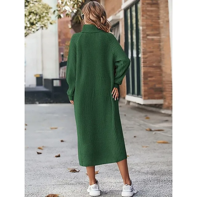 Women’s Sweater Dress Jumper Dress Winter Dress Midi Dress Warm Fashion Casual Plain Outdoor Daily Vacation Going out Turtleneck Long Sleeve Loose Fit Black Brown Green XS S M L XL XXL
