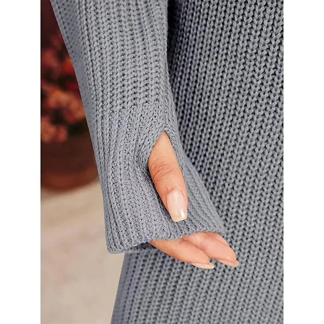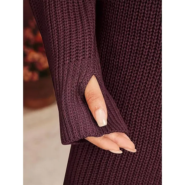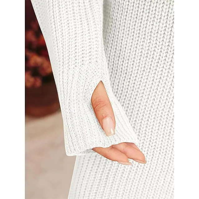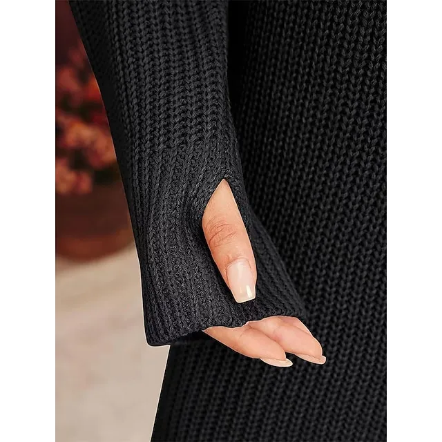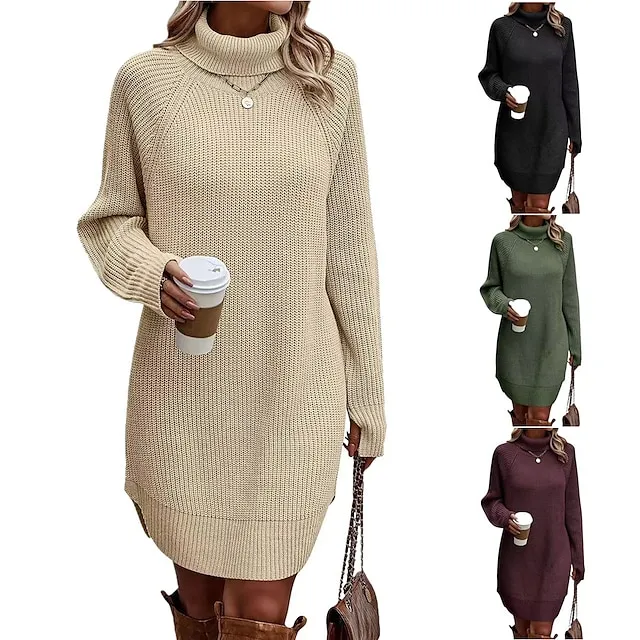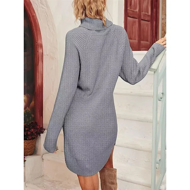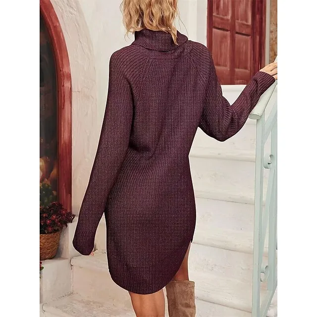 Women’s Sweater Dress Jumper Dress Winter Dress Mini Dress Knitwear Fashion Casual Pure Color Outdoor Daily Vacation Going out Turtleneck Long Sleeve Loose Fit Black White Wine S M L XL