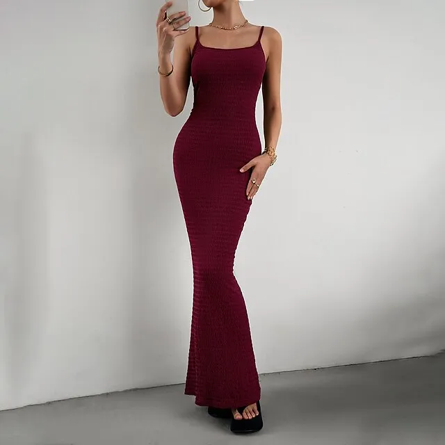 Women’s Sweater Dress Knit Dress Jumper Dress Long Dress Maxi Dress Knitwear Elegant Fashion Pure Color Outdoor Casual Holiday Going out U Neck Sleeveless Slim Black Wine Brown S M L XL