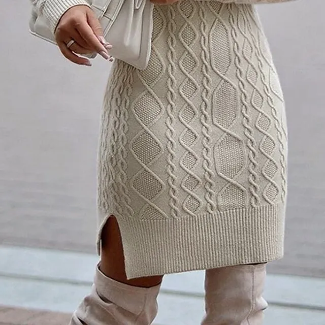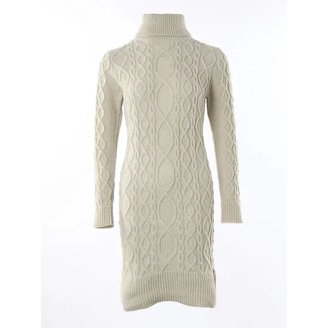 Women’s Sweater Dress Knit Dress Jumper Dress Midi Dress Knitwear Fashion Elegant Dress Pure Color Outdoor Winter Dress Daily Date High Neck Long Sleeve Print Knit Regular Fit Beige S M L XL XXL